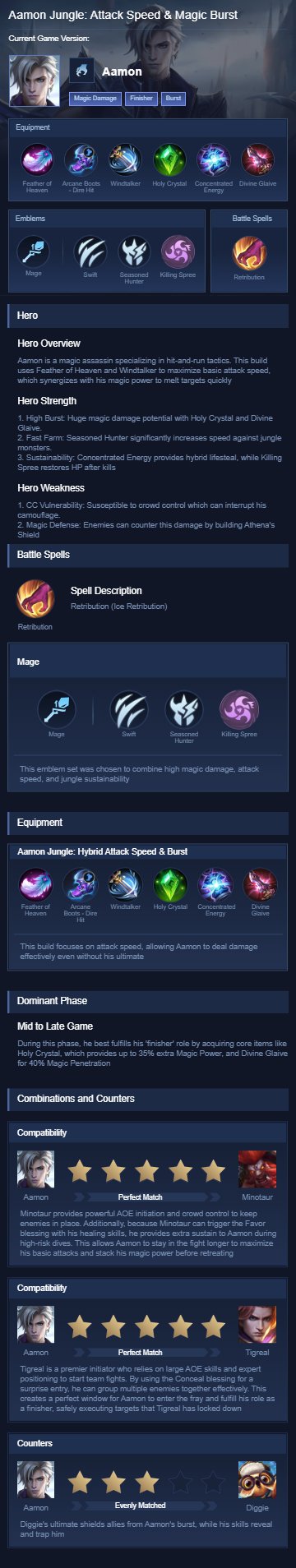 Aamon Jungle: Hybrid Attack Speed & Burst. This build focuses on attack speed, allowing Aamon to deal damage effectively even without his ultimate