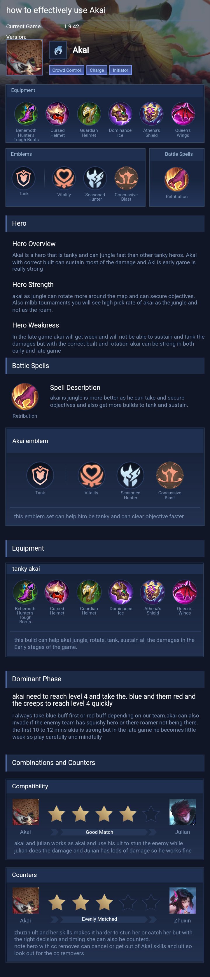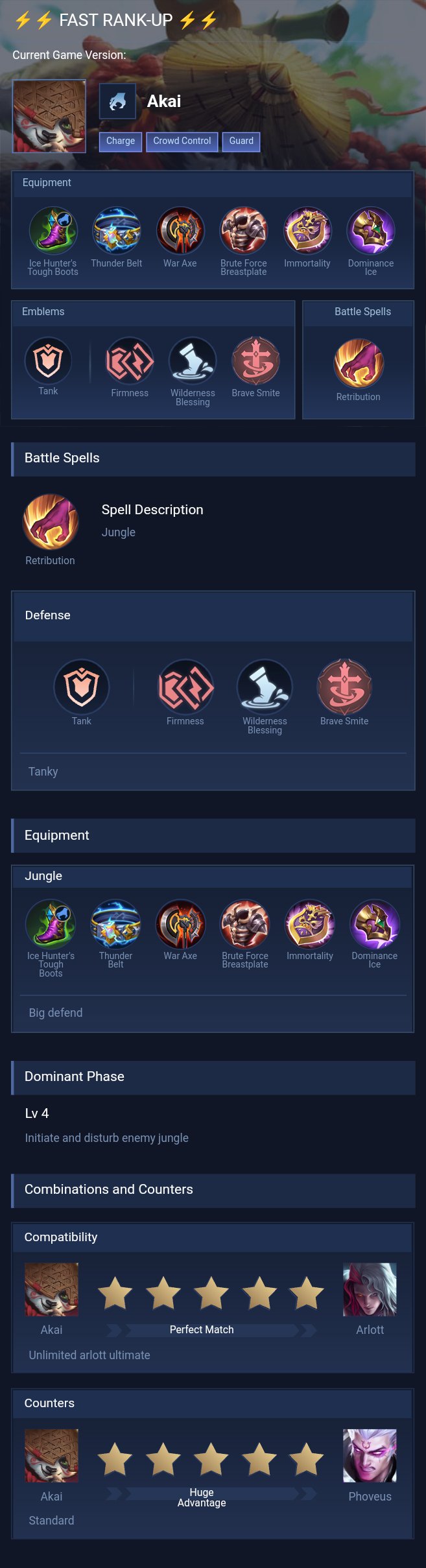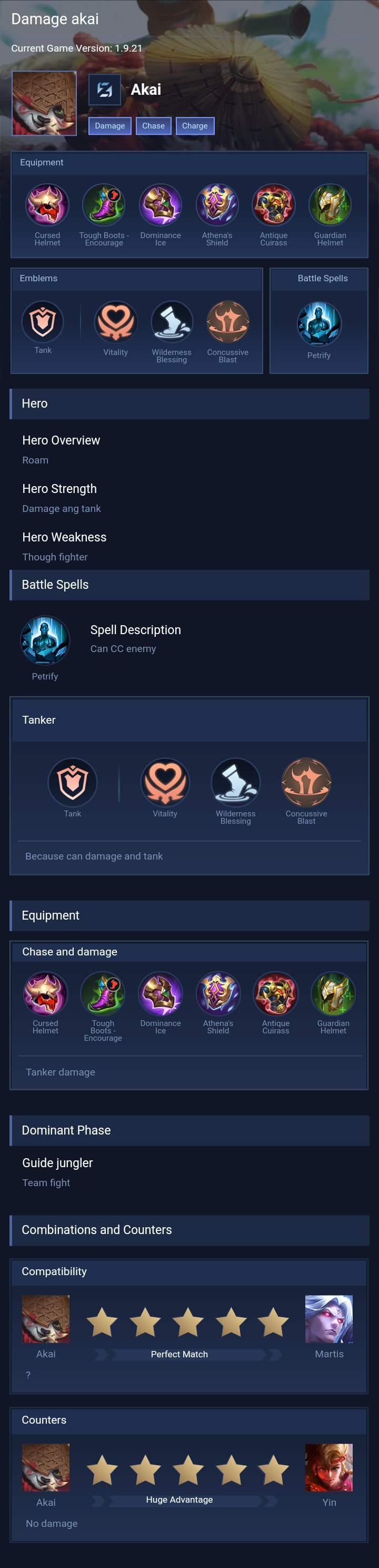 Akai is a tank hero with easy difficulty. This is a live guide — win rate, pick rate and counter data refresh every 6 hours from real ranked matches.