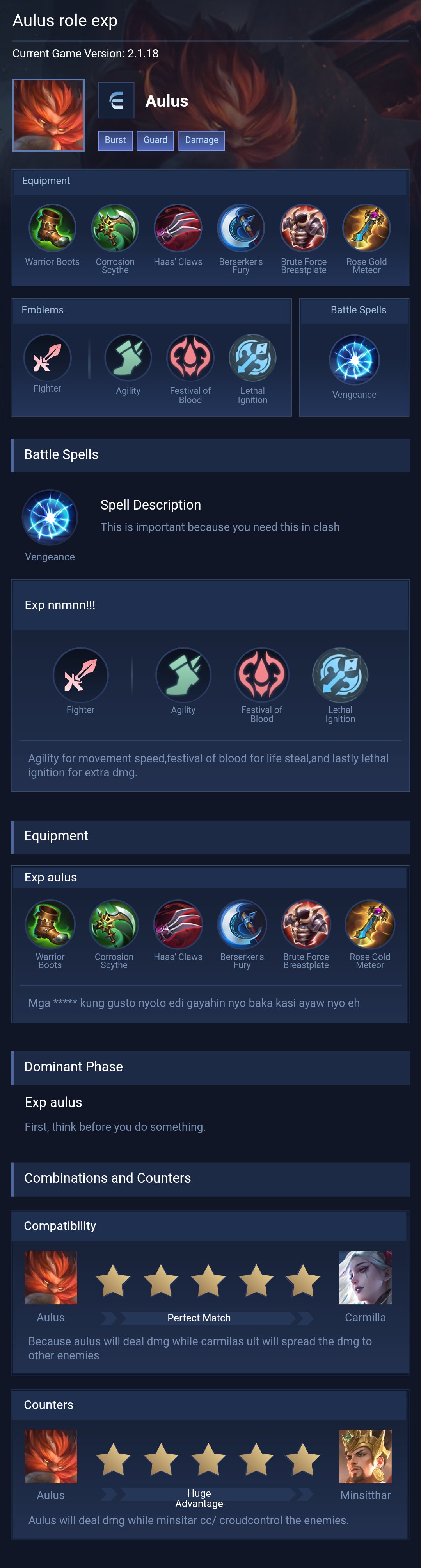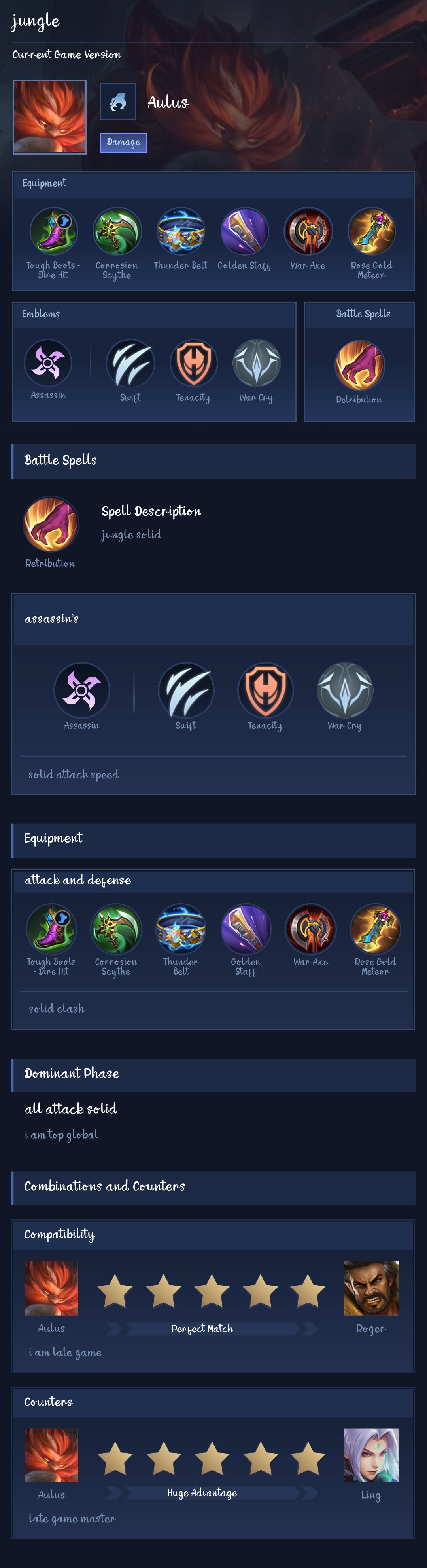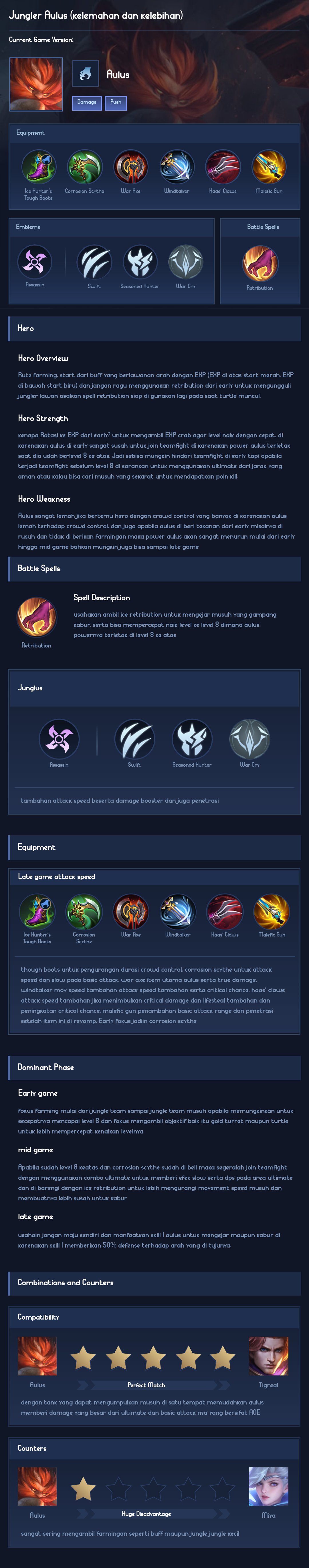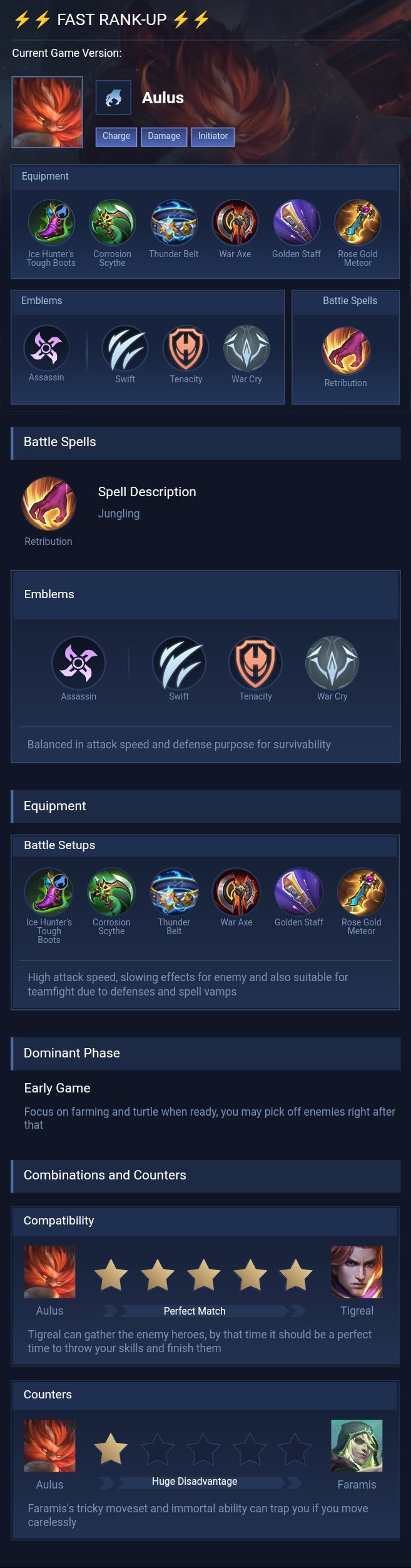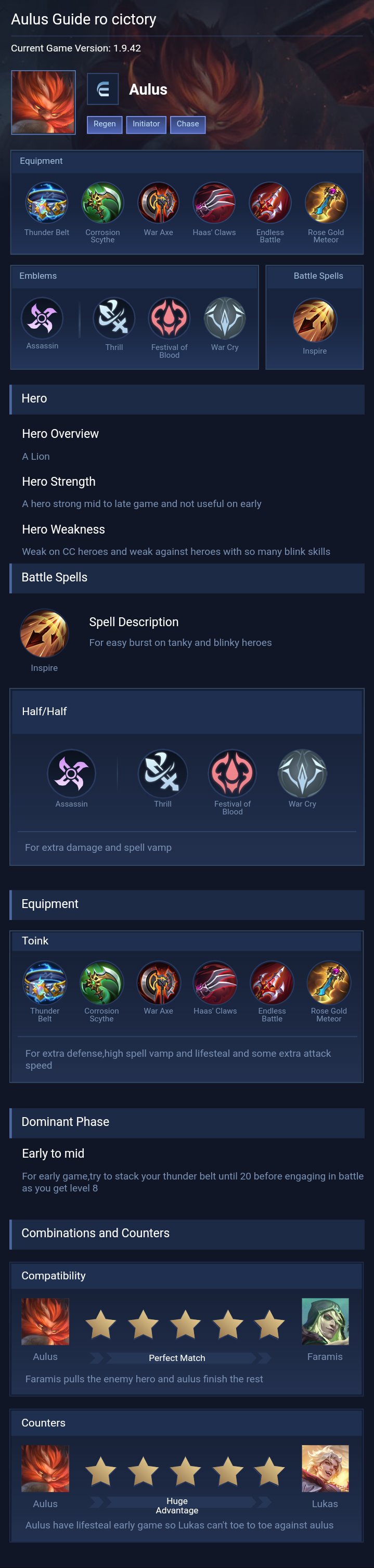 Aulus is a fighter hero with medium difficulty. This is a live guide — win rate, pick rate and counter data refresh every 6 hours from real ranked matches.
