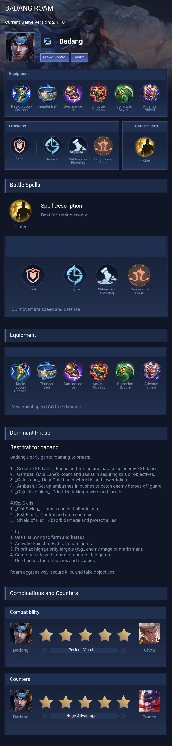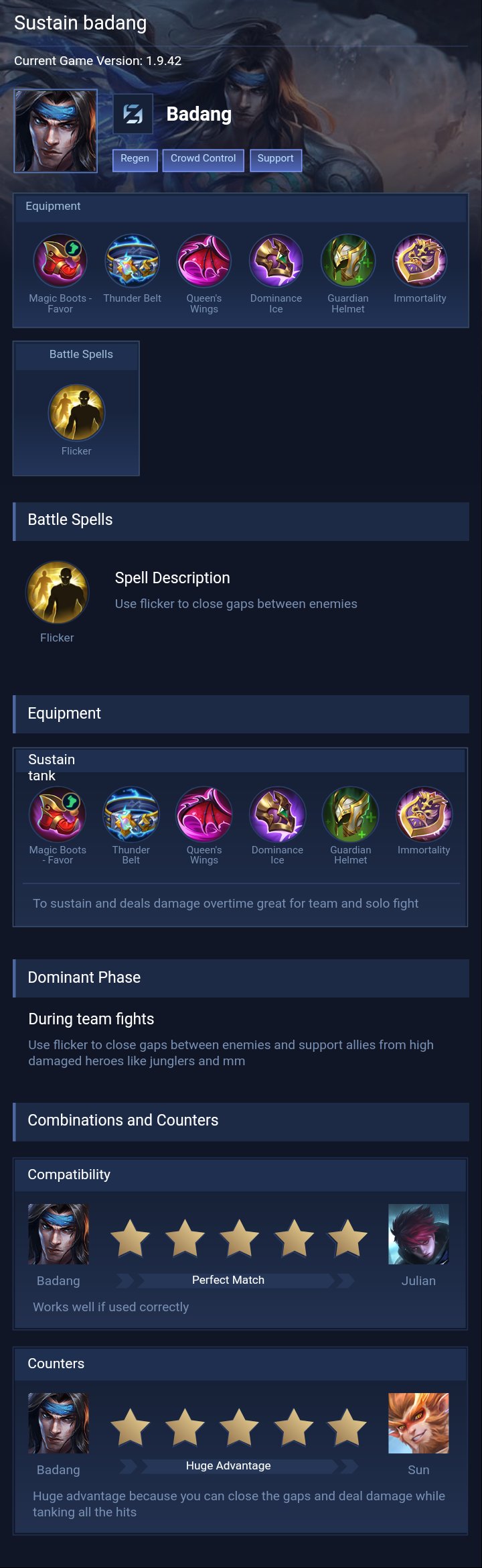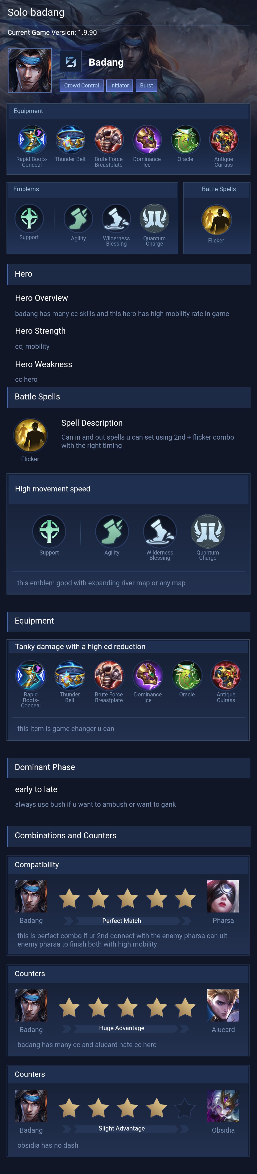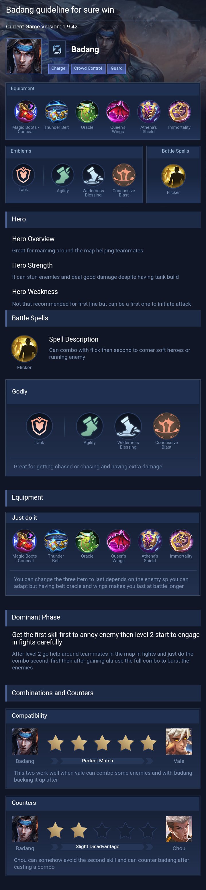 Badang is a fighter hero with easy difficulty. This is a live guide — win rate, pick rate and counter data refresh every 6 hours from real ranked matches.