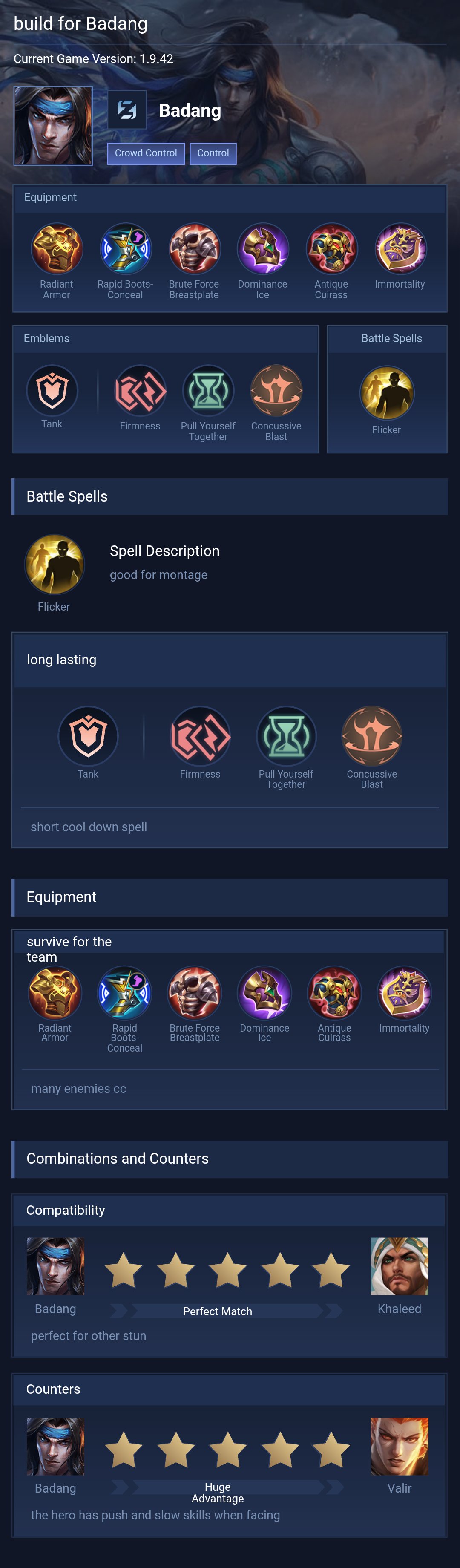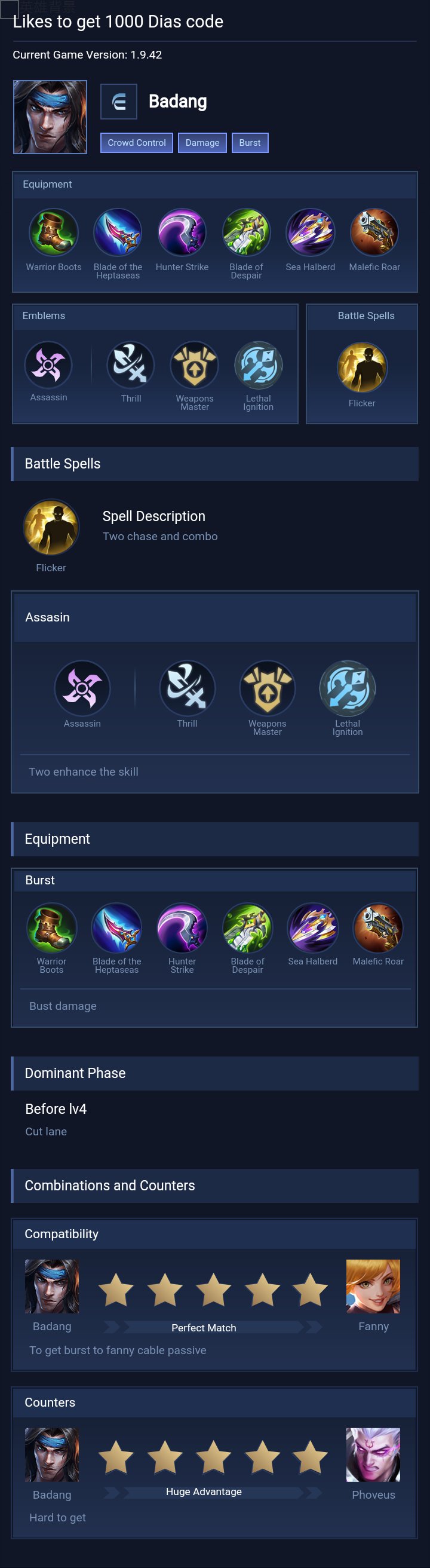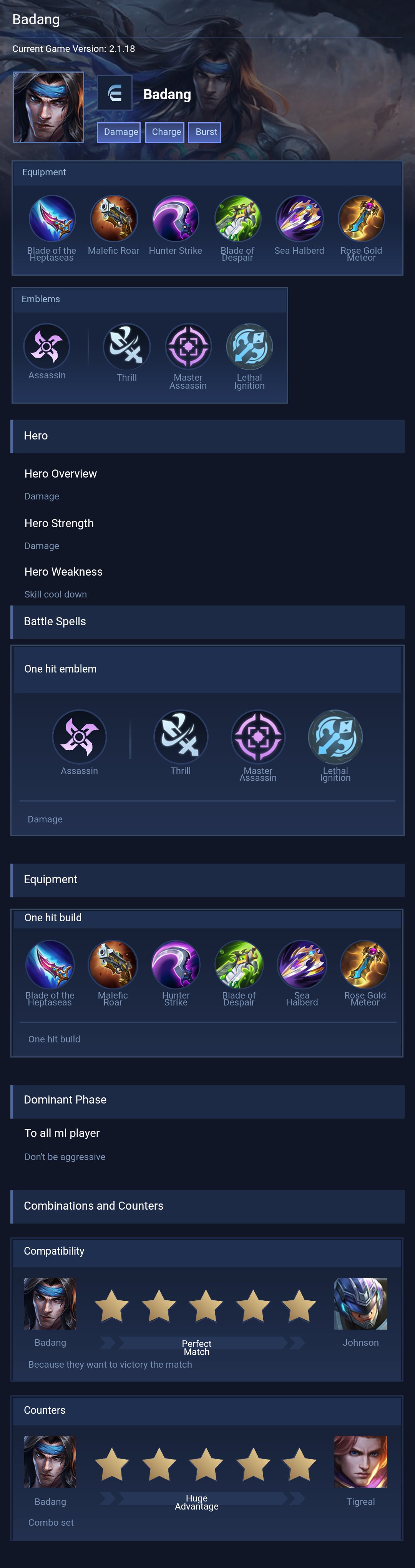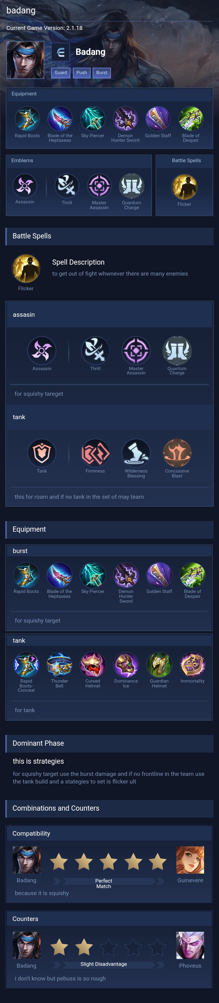 Badang is a fighter hero with easy difficulty. This is a live guide — win rate, pick rate and counter data refresh every 6 hours from real ranked matches.