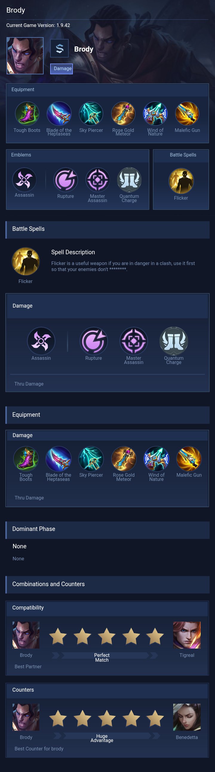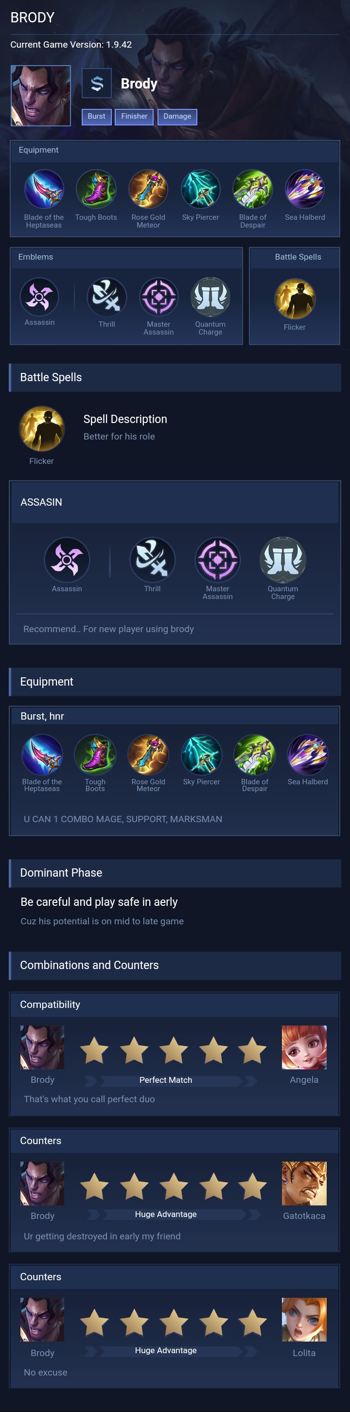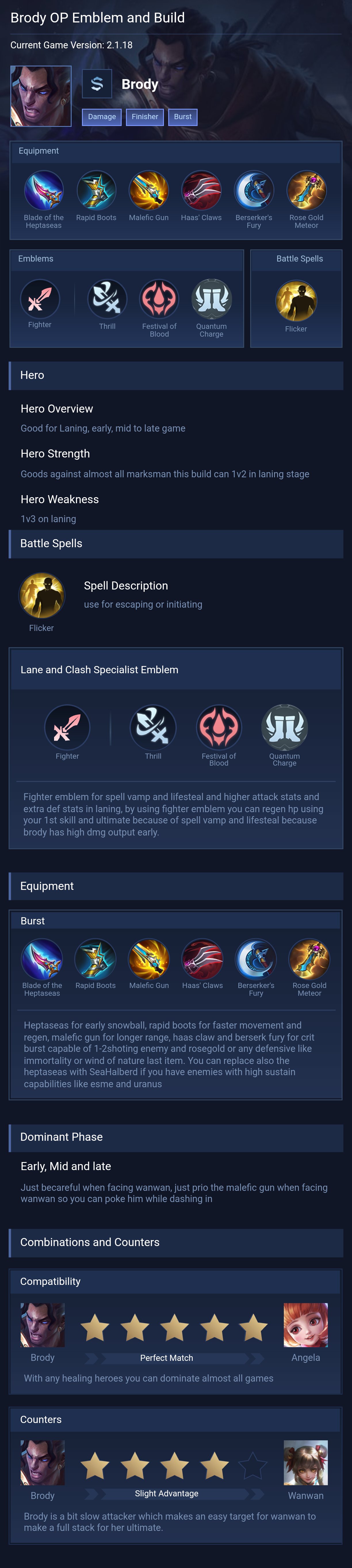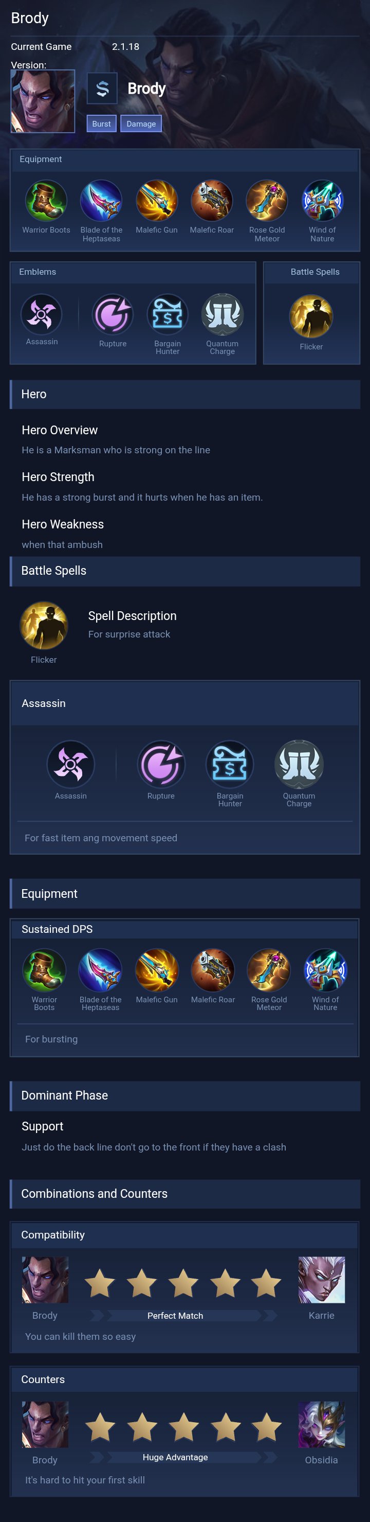 Brody is a marksman hero with medium difficulty. This is a live guide — win rate, pick rate and counter data refresh every 6 hours from real ranked matches.