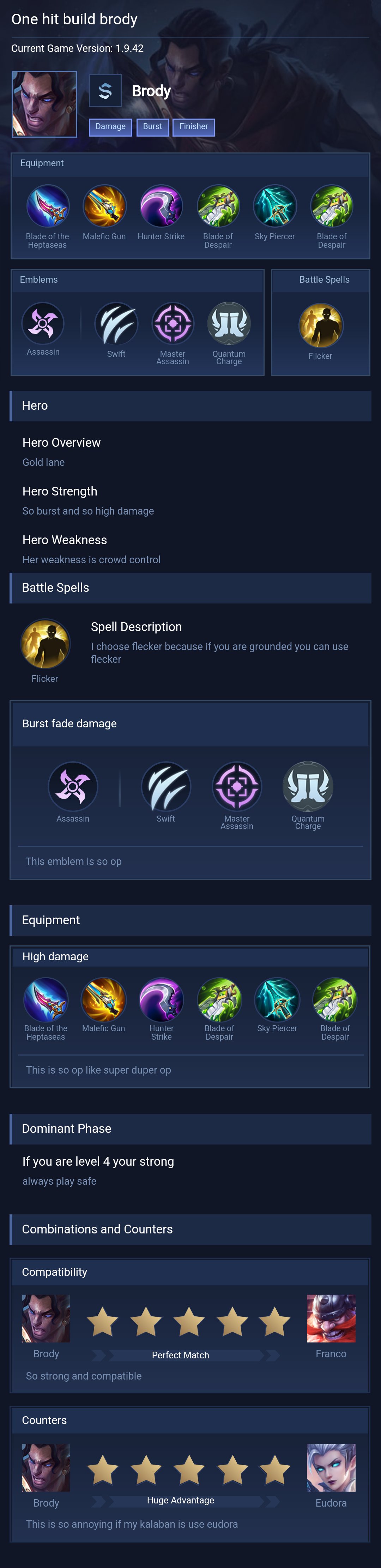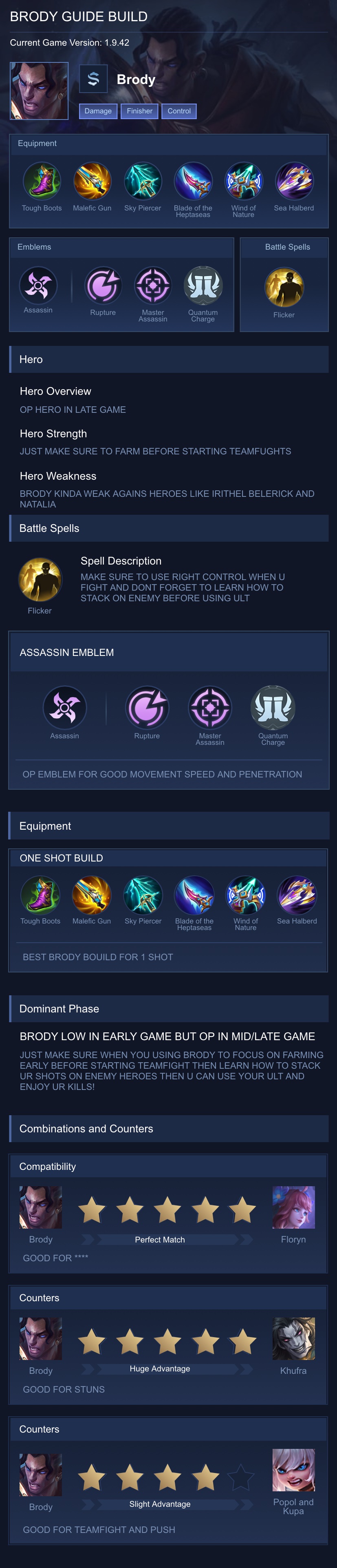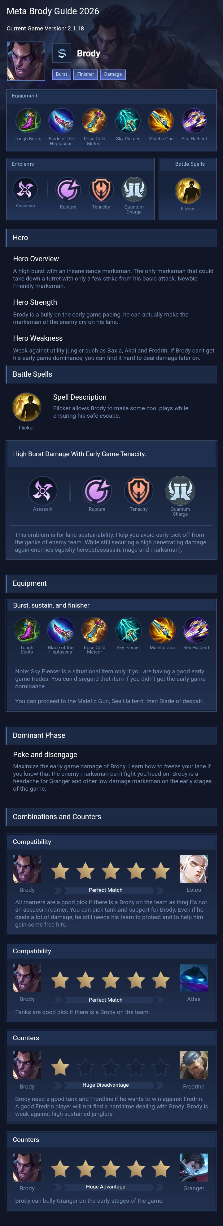 Brody Guide 2026 — Best Build, Combos & Counters