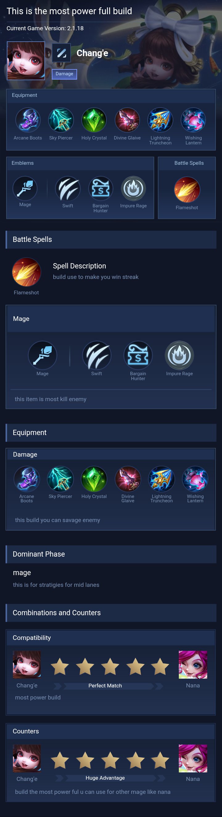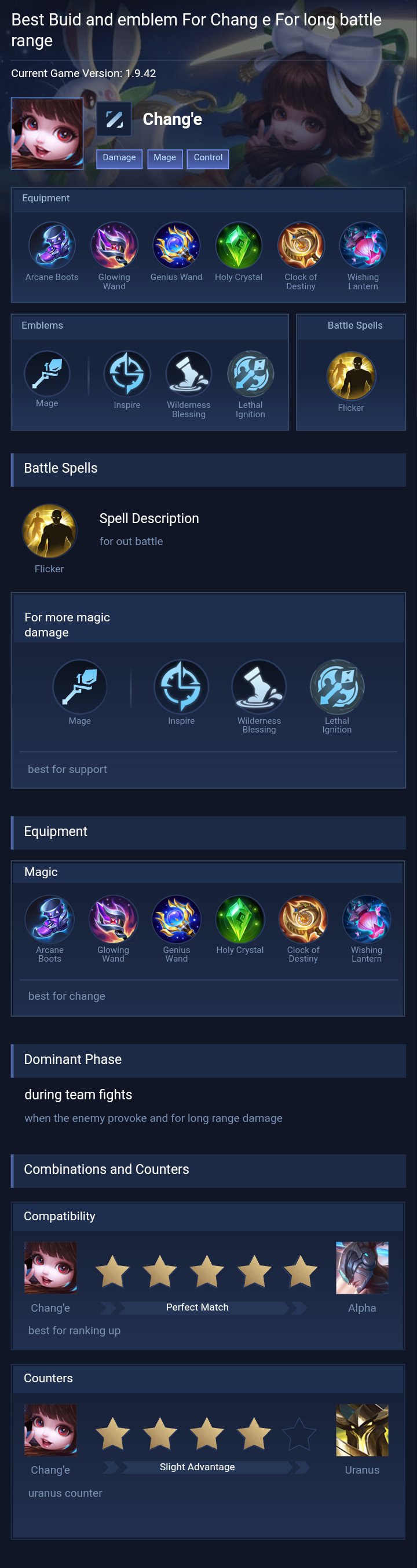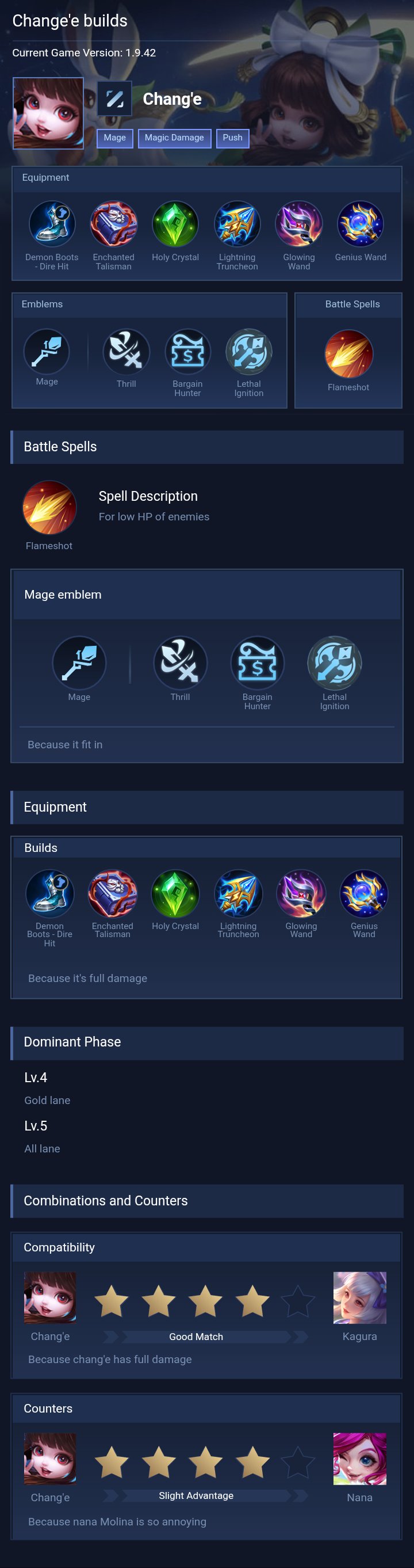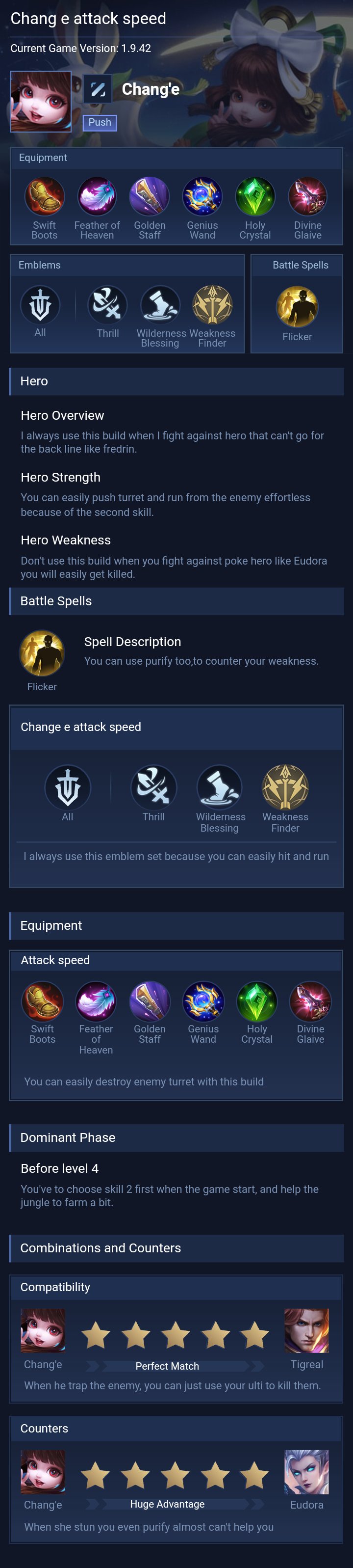 MM Build. This build is for when you want to prioritize attack speed for Chang'e. Chang'e actually work really well with this and this boost her pushing capabilities (which is already great).