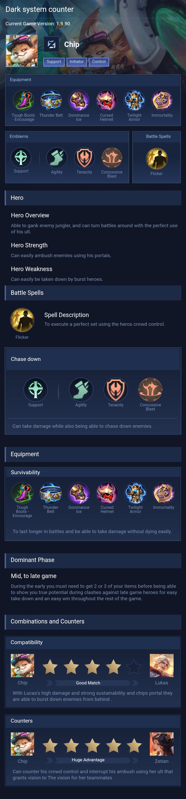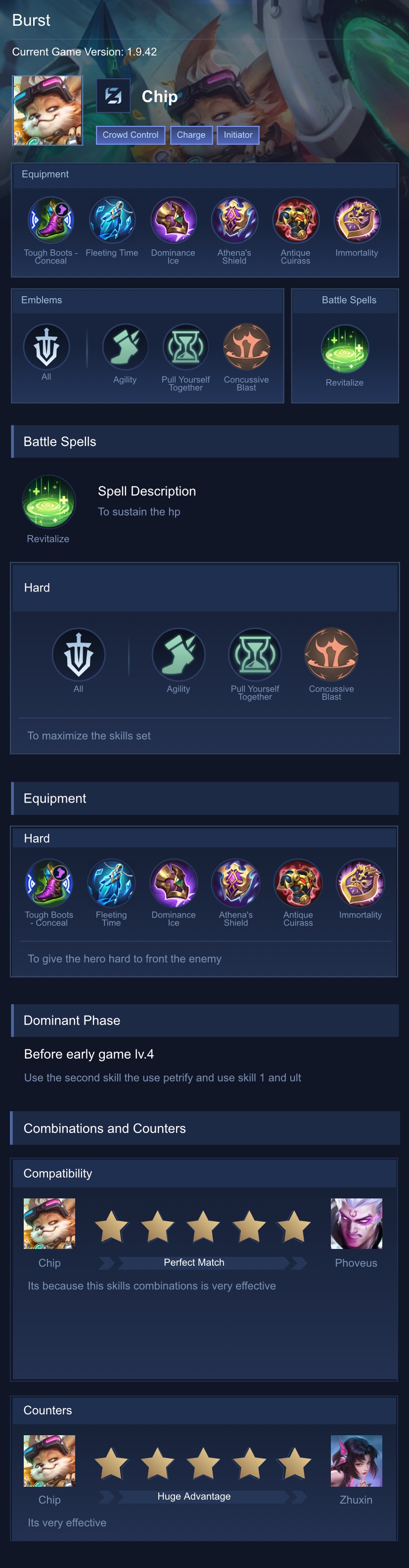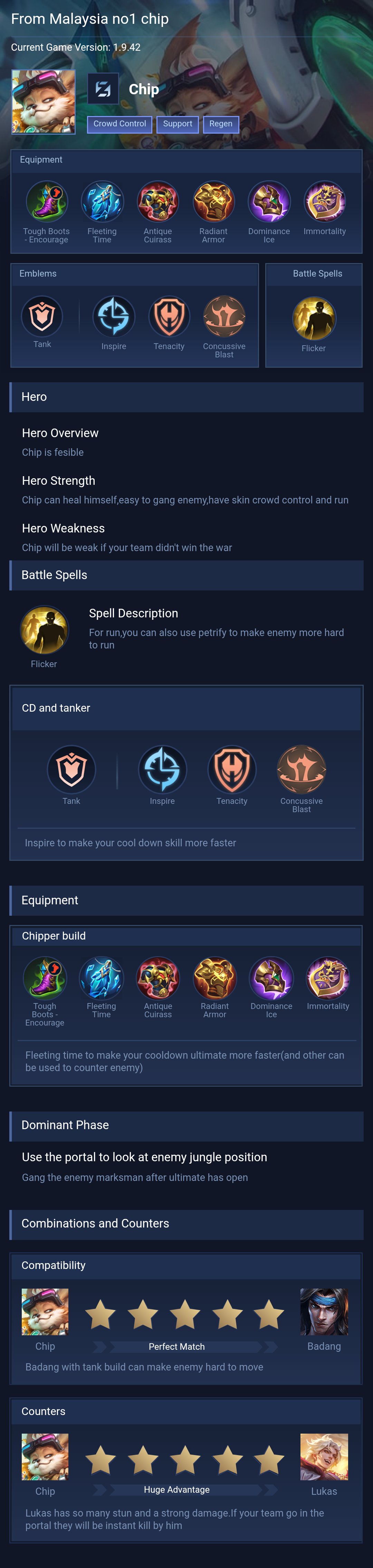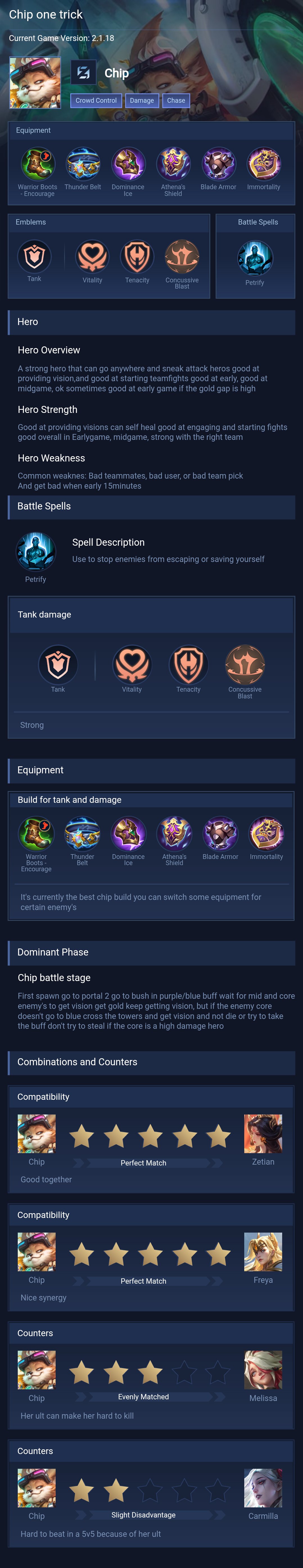 IDK HOW TO EXPLAIN PROPERLY SORRY. BUT THIS IS CHIP'S STRENGTH AND WEAKNESSES BASED ON MY EXPERIENCE. I have 2000+ matches on him.
