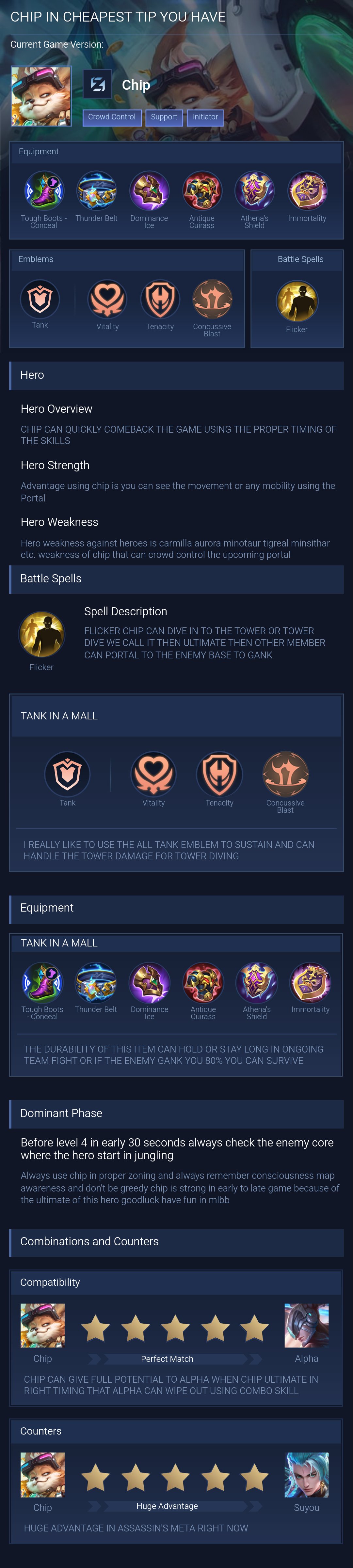 I highly recommend this comprehensive guide for players looking to master Chip in MLBB. This guide provides in-depth insights into Chip's abilities, optimal builds, and effective strategies.