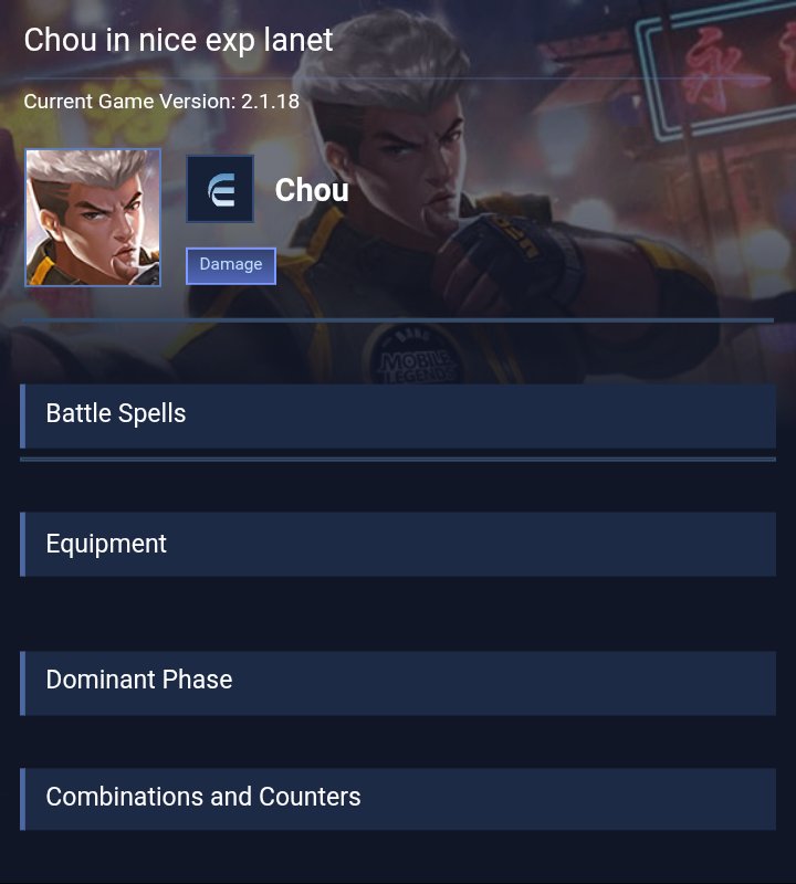 Chou is a fighter hero with hard difficulty. This is a live guide — win rate, pick rate and counter data refresh every 6 hours from real ranked matches.