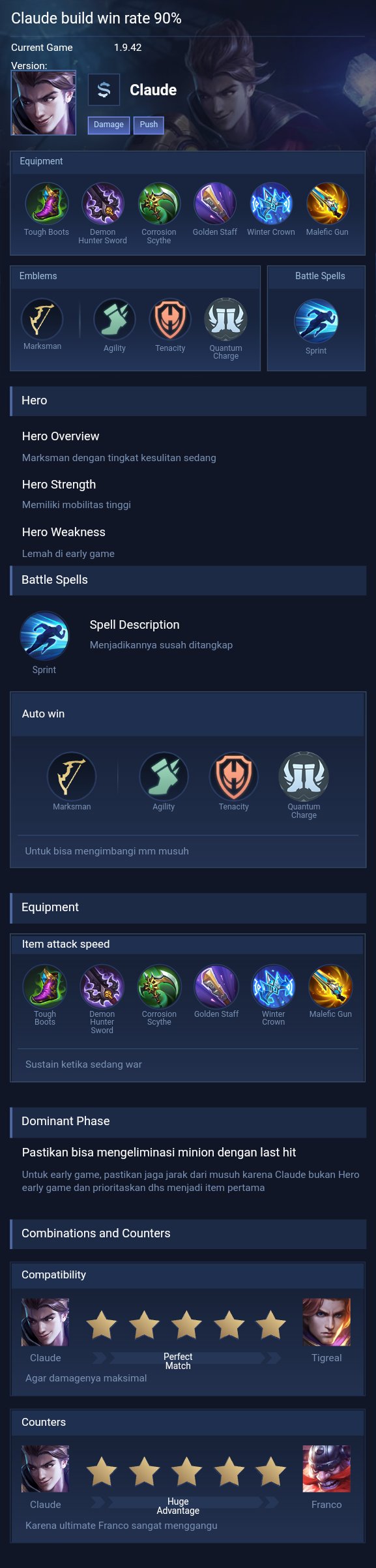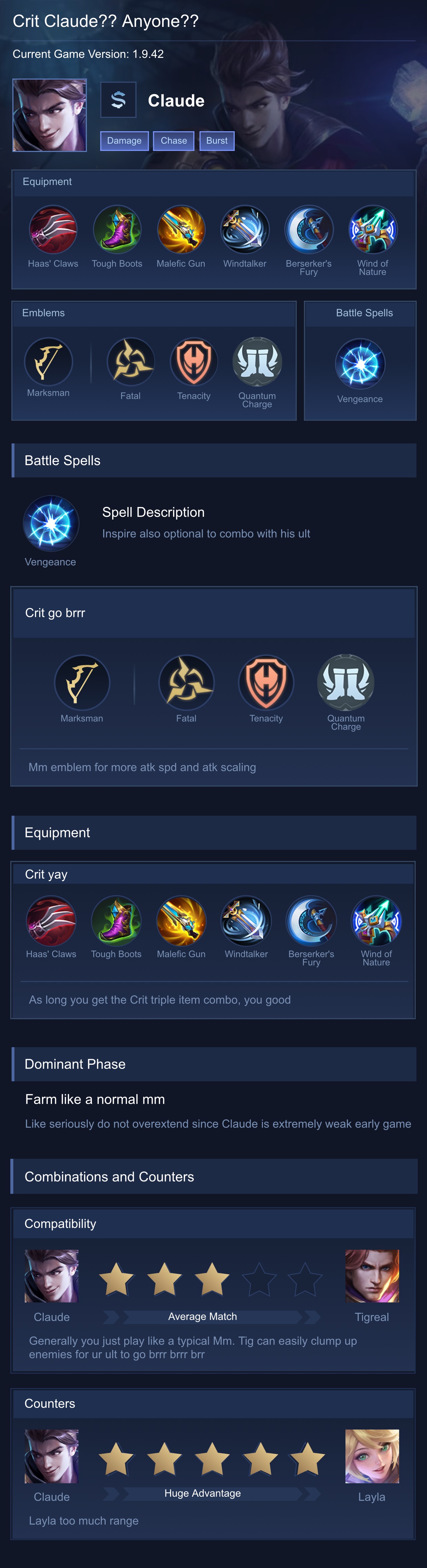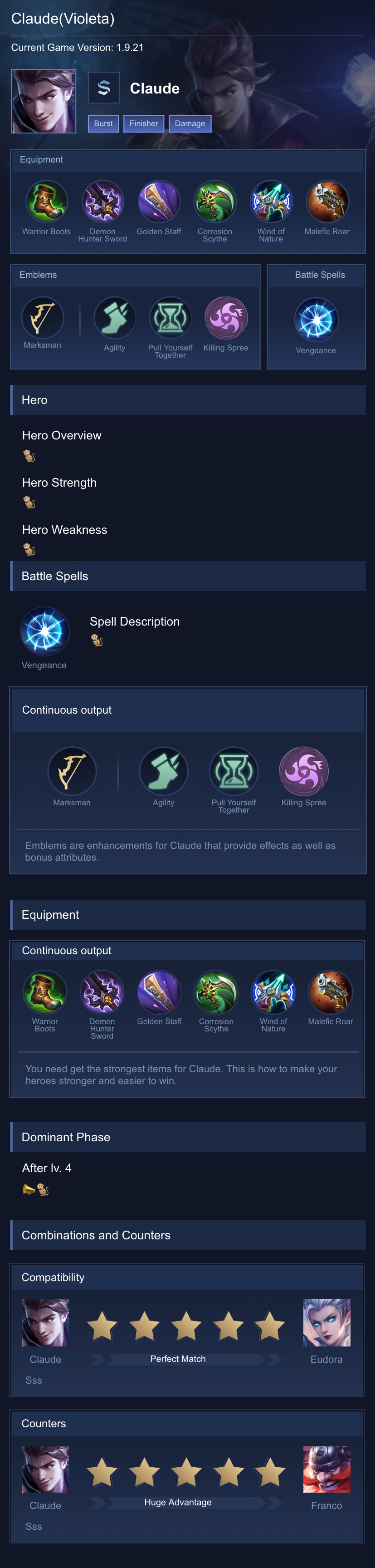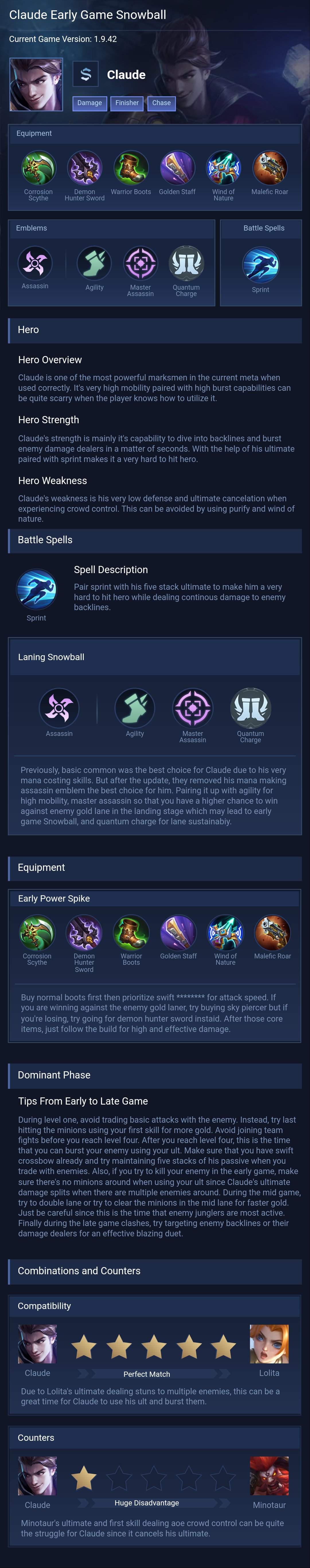 Claude is a marksman hero with medium difficulty. This is a live guide — win rate, pick rate and counter data refresh every 6 hours from real ranked matches.