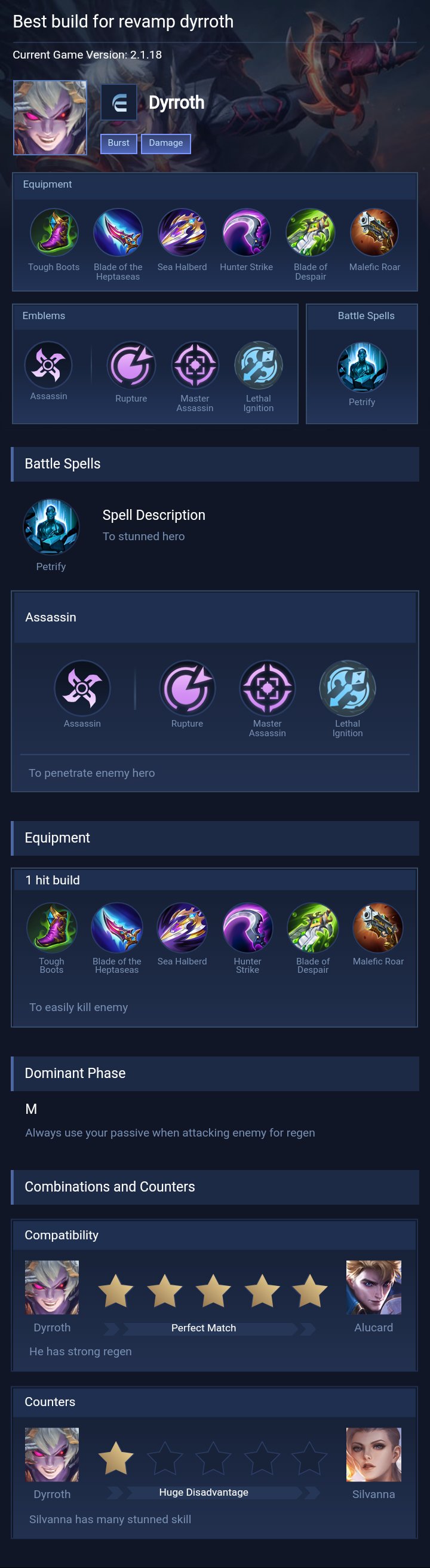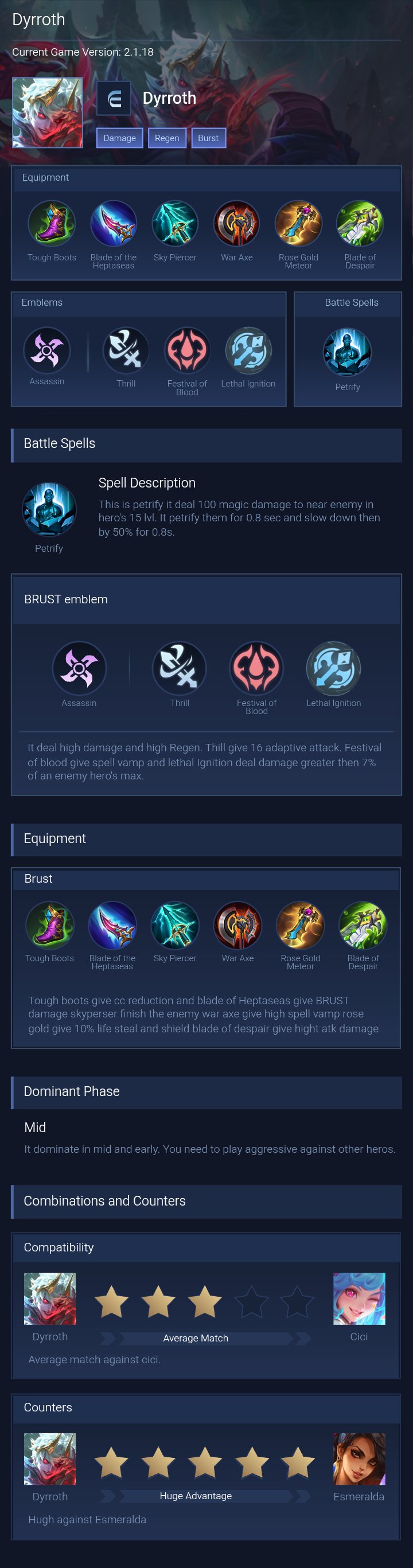 Dyrroth Guide 2026 — Best Build, Combos & Counters