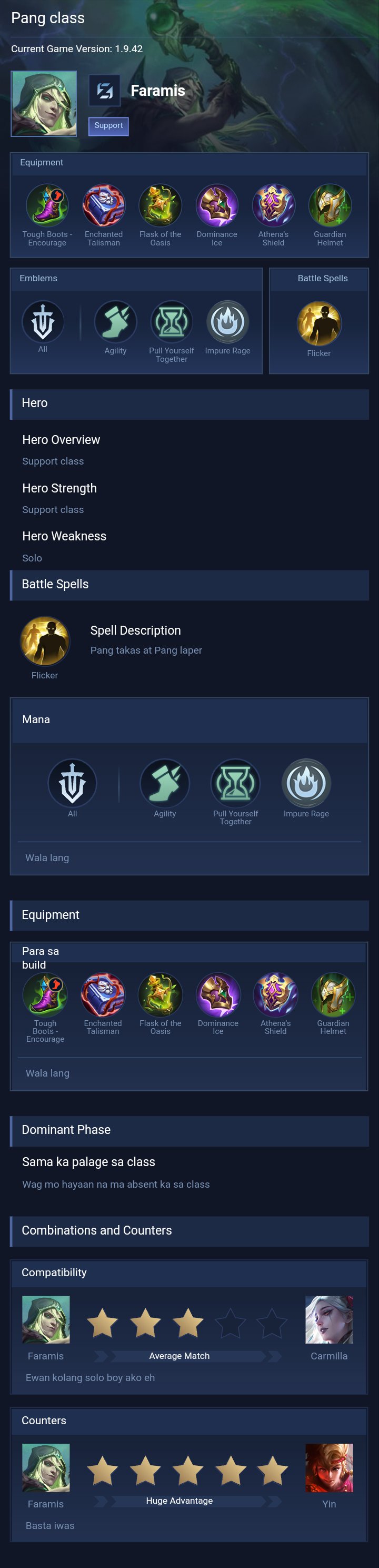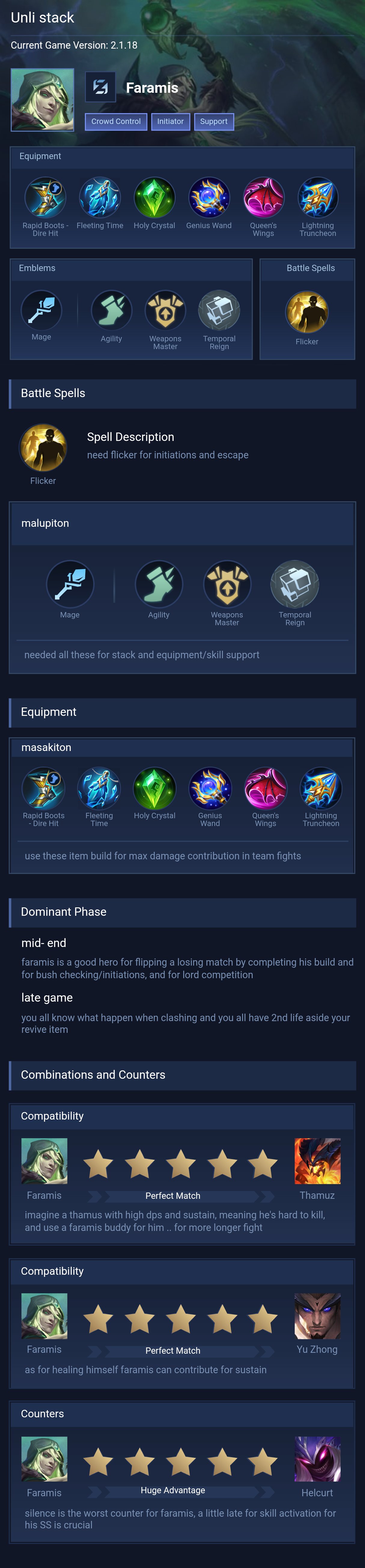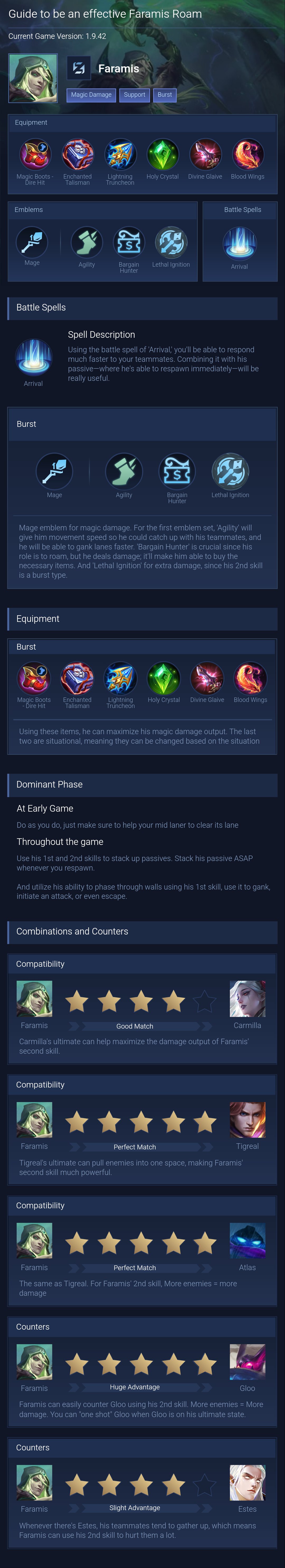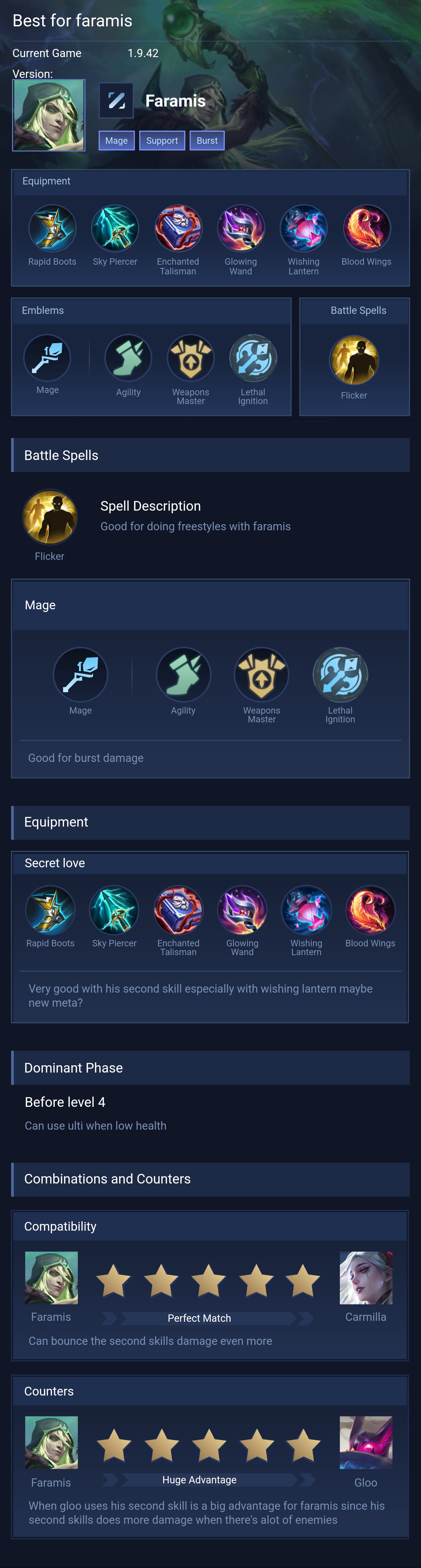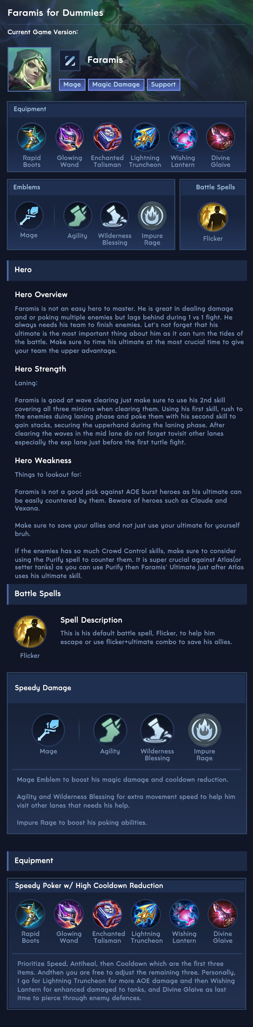 Faramis is a support hero with medium difficulty. This is a live guide — win rate, pick rate and counter data refresh every 6 hours from real ranked matches.
