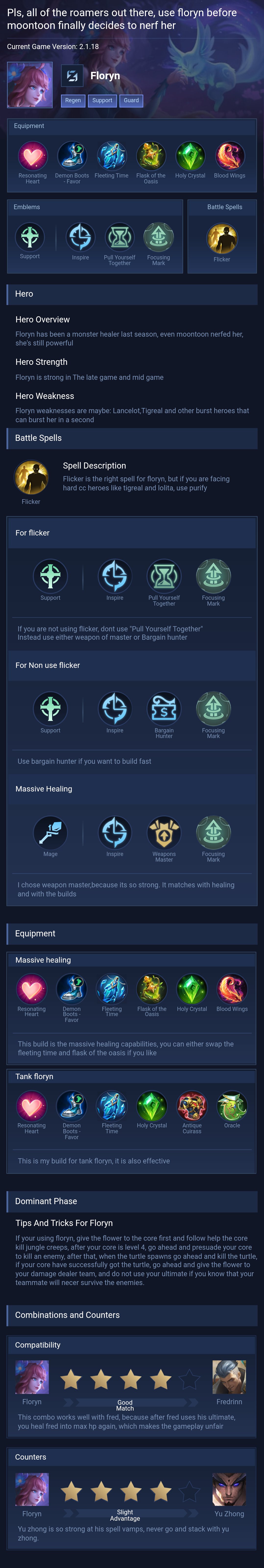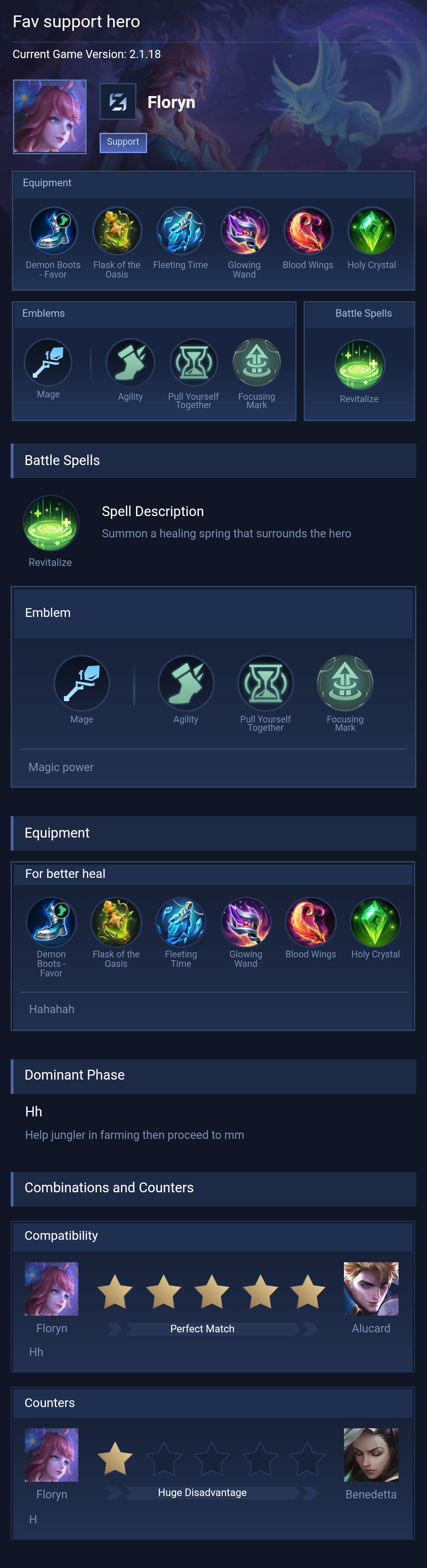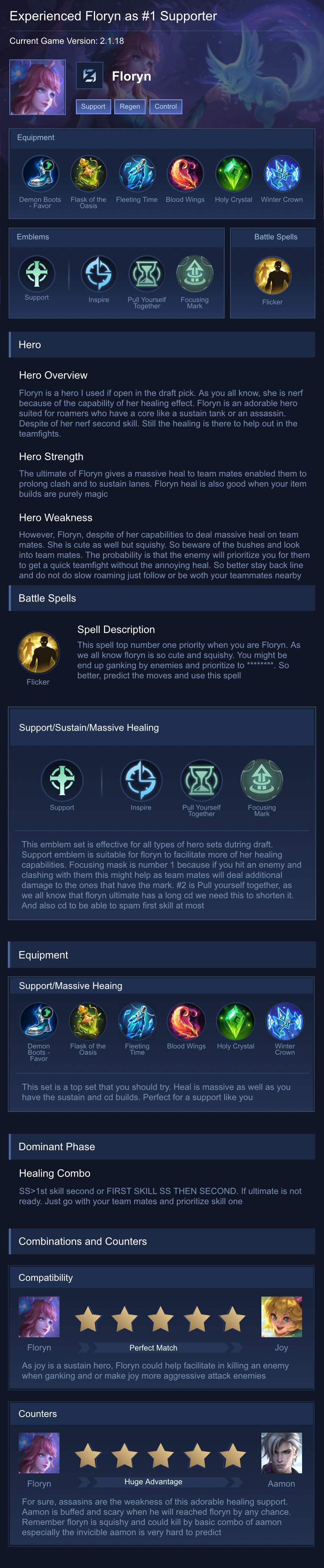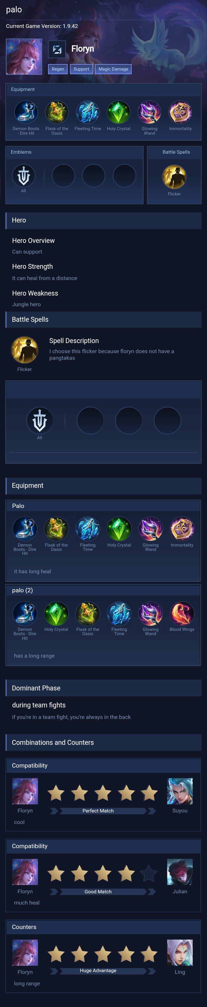 This emblem set is effective for all types of hero sets dutring draft. Support emblem is suitable for floryn to facilitate more of her healing capabilities. Focusing mask is number 1 because if you hit an enemy and clashing with them this might help as team mates will deal additional damage to the ones that have the mark. #2 is Pull yourself together, as we all know that floryn ultimate has a long cd we need this to shorten it. And also cd to be able to spam first skill at most