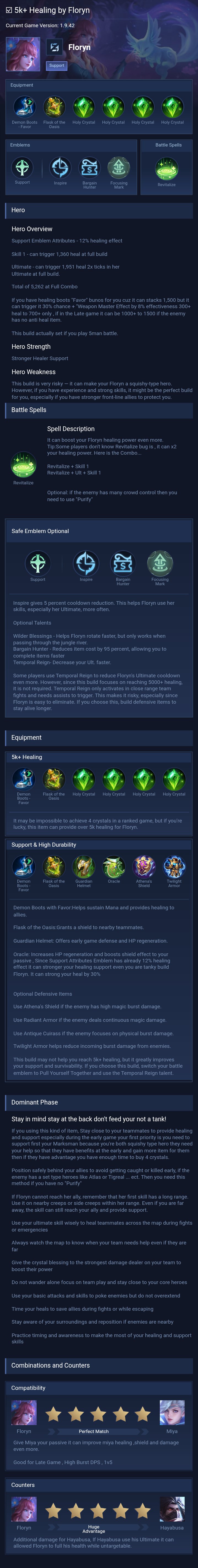 Oracle: Increases HP regeneration and boosts shield effect to your passive , Since Support Attributes Emblem has already 12% healing effect it can stronger your healing support even you are tanky build Floryn. It can strong your heal by 30%