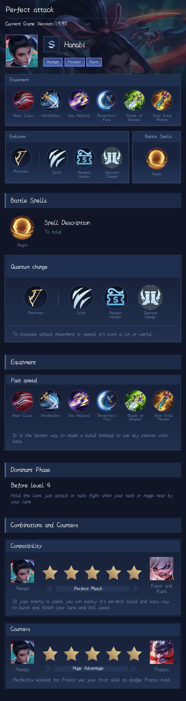 Hanabi's early game base attack speed is not enough for hero like Miya/karrie so this emblem with all attack speed increasing talents will provide a lot of help in early to mid game because of hanabi's passive