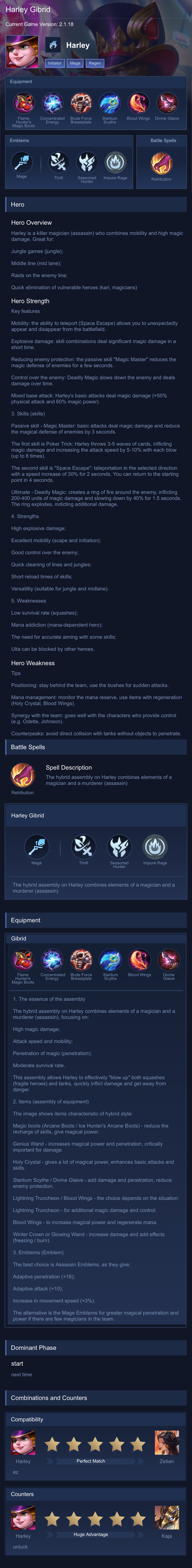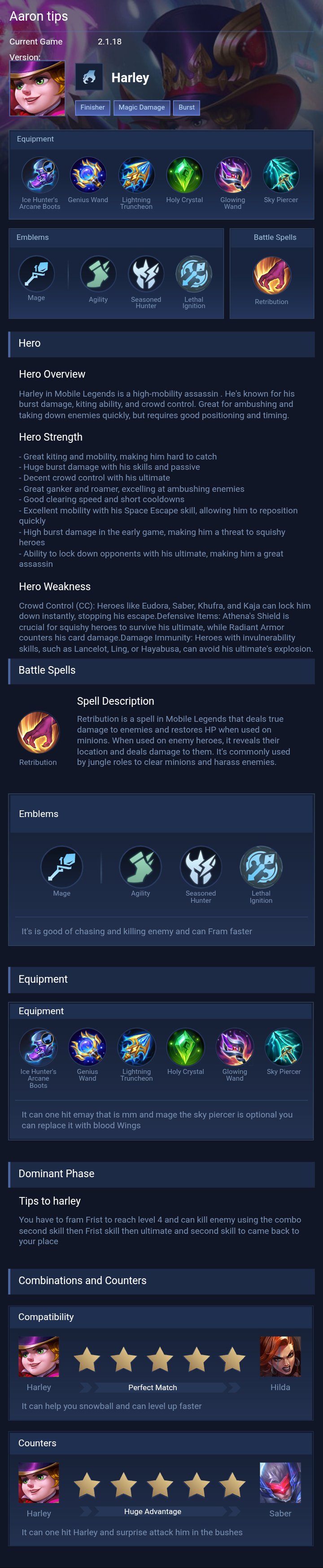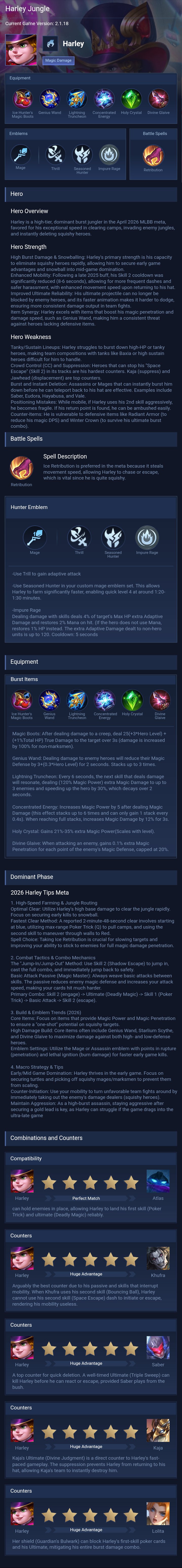 Harley is a assassin hero with medium difficulty. This is a live guide — win rate, pick rate and counter data refresh every 6 hours from real ranked matches.