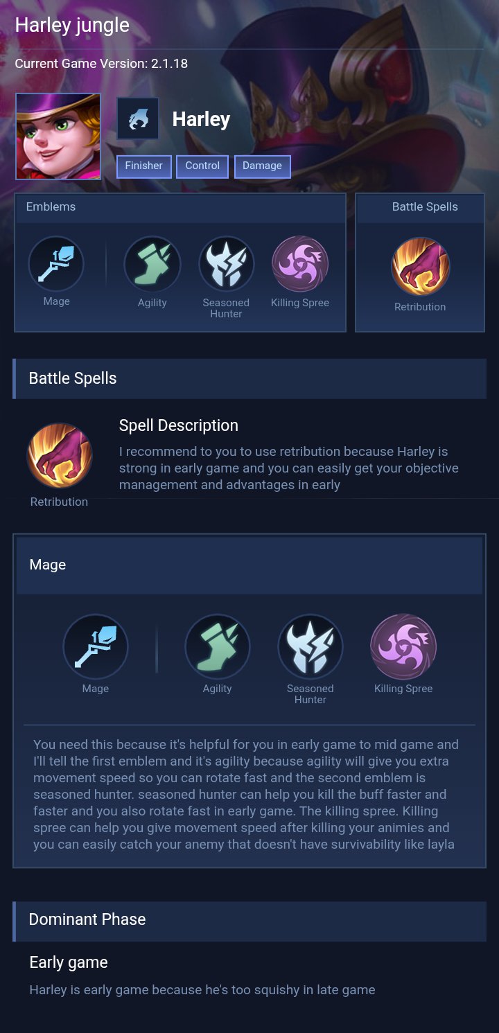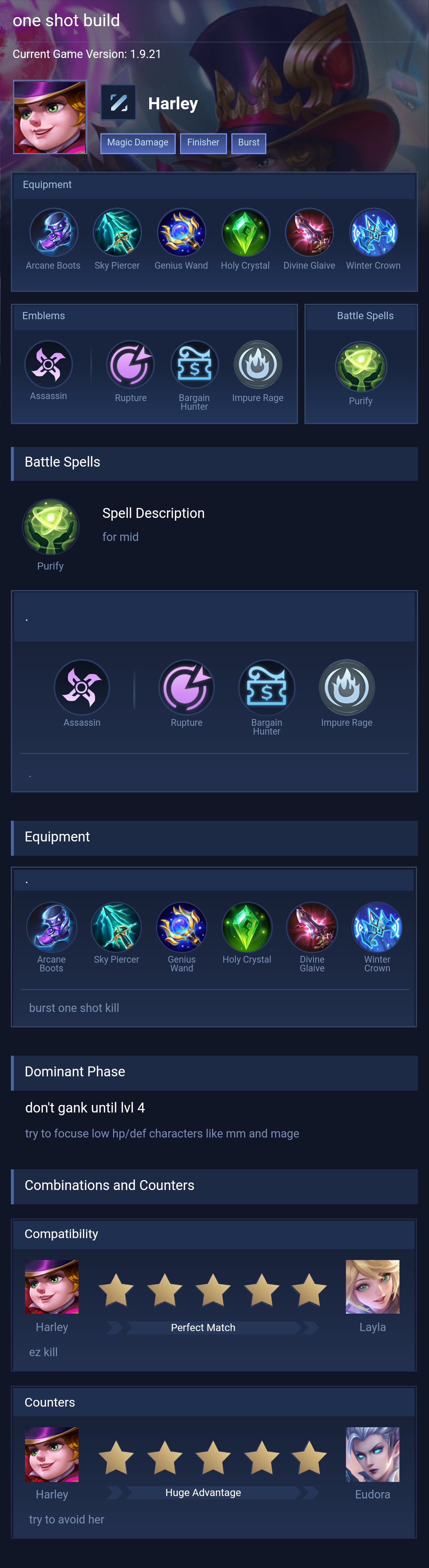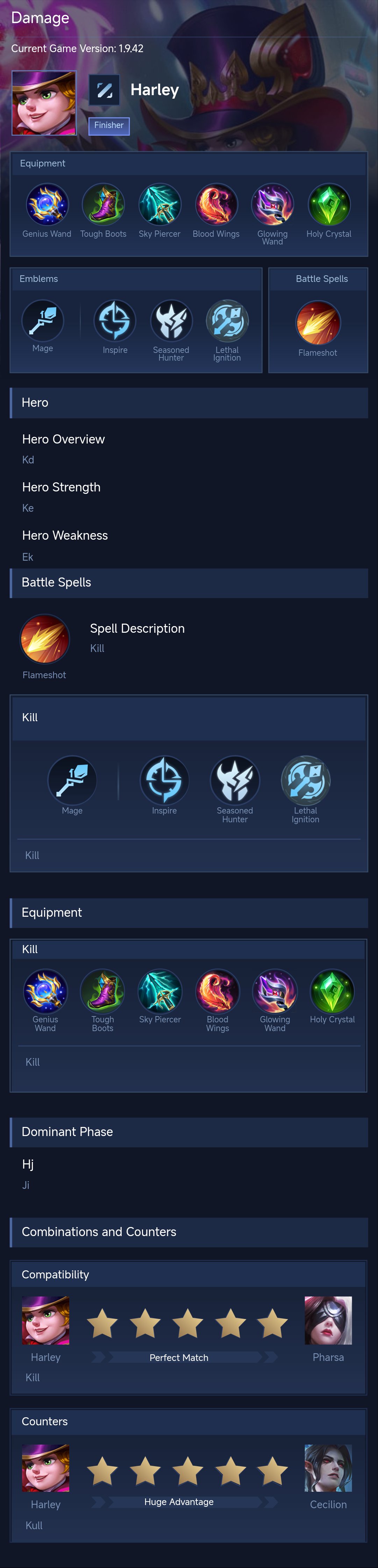 Harley is a assassin hero with medium difficulty. This is a live guide — win rate, pick rate and counter data refresh every 6 hours from real ranked matches.