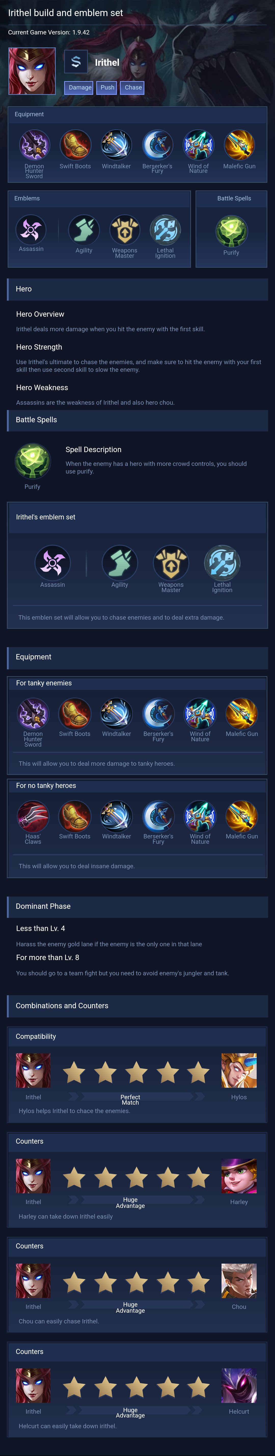 Overall, using the Assassin Emblem with Fatal, Tenacity, and Quantum Charge attributes can turn Irithel into a deadly and agile marksman, capable of dealing massive burst damage and staying in fights longer.