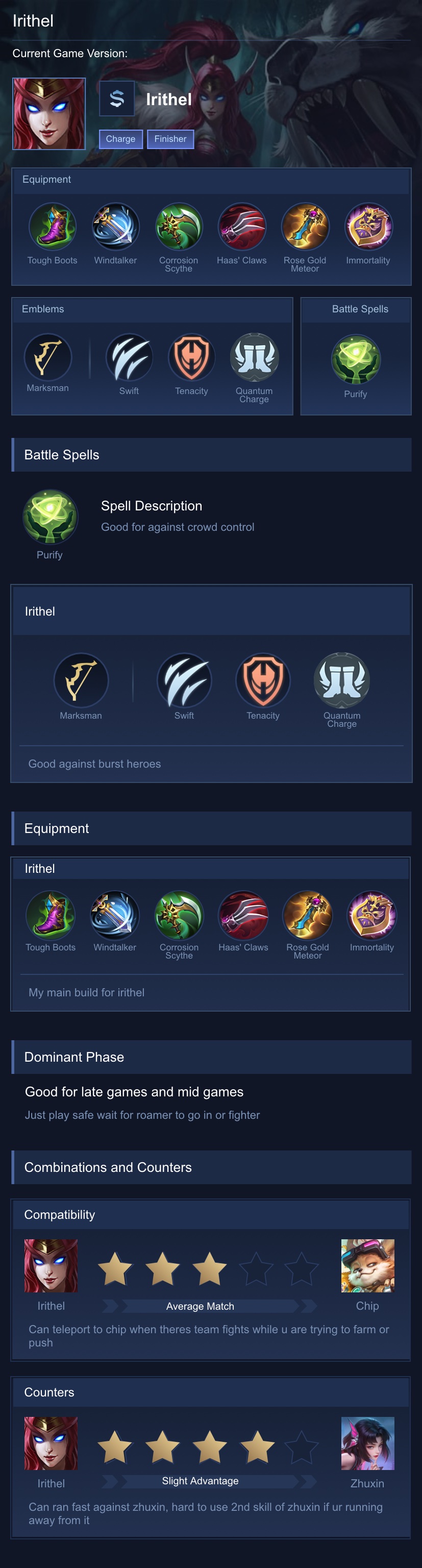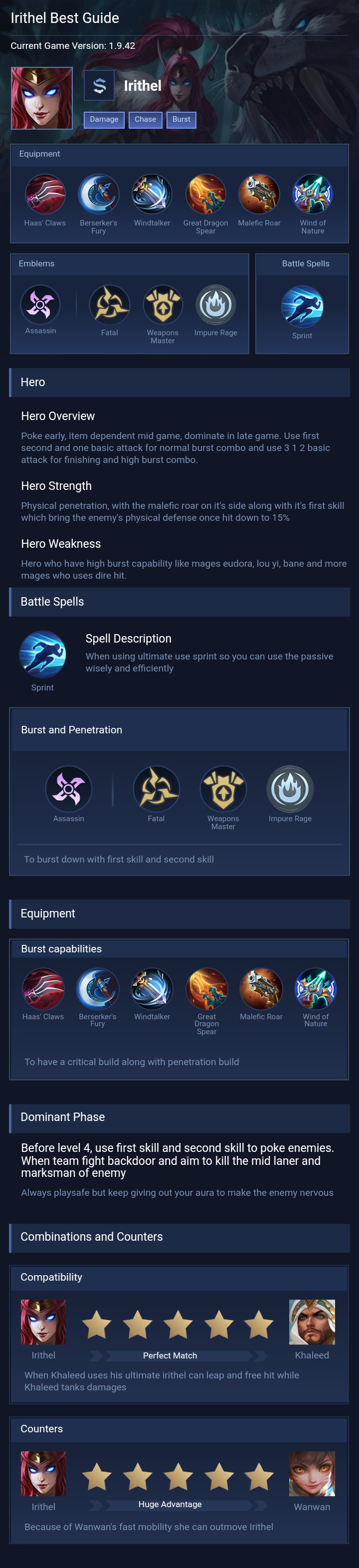 Safe early to dedly late. Here's why the suggested equipment set is suitable for Irithel:
