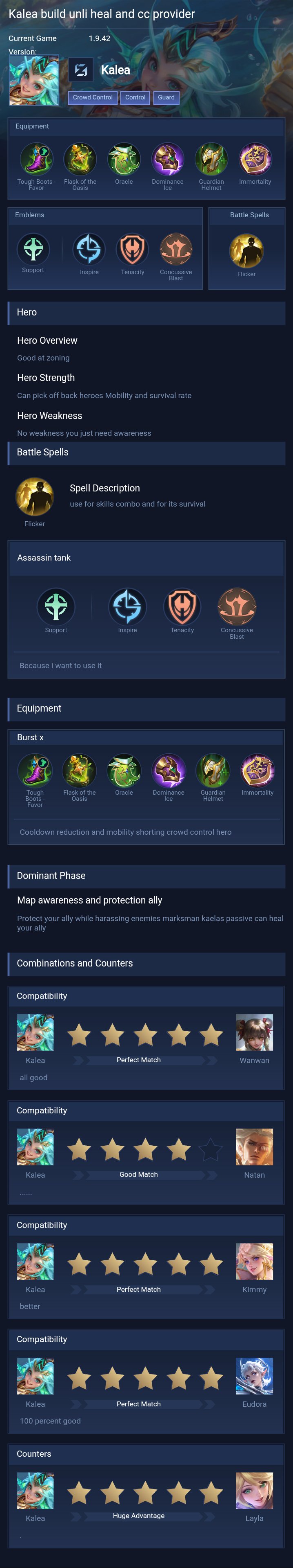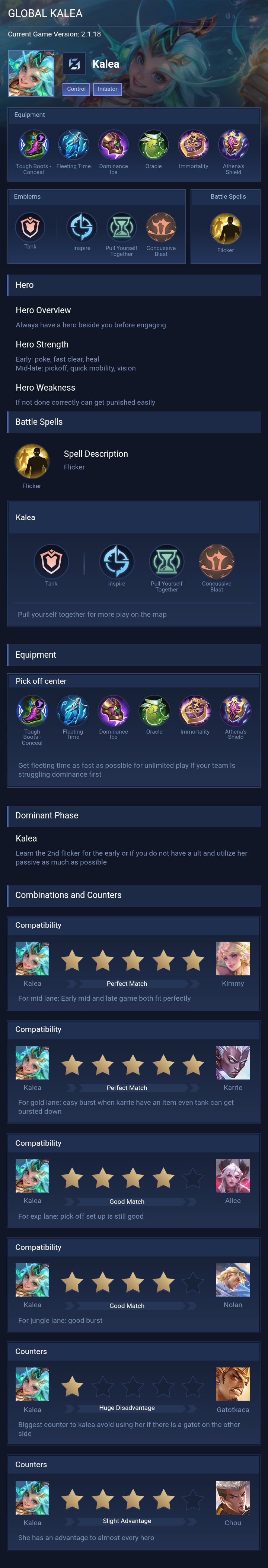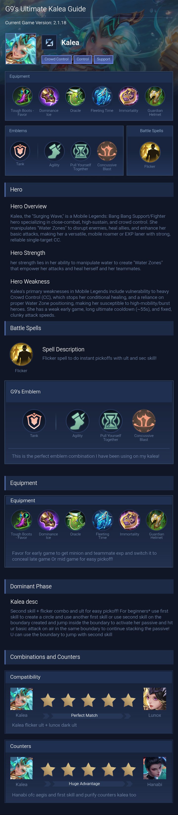 Kalea is a support hero with medium difficulty. This is a live guide — win rate, pick rate and counter data refresh every 6 hours from real ranked matches.