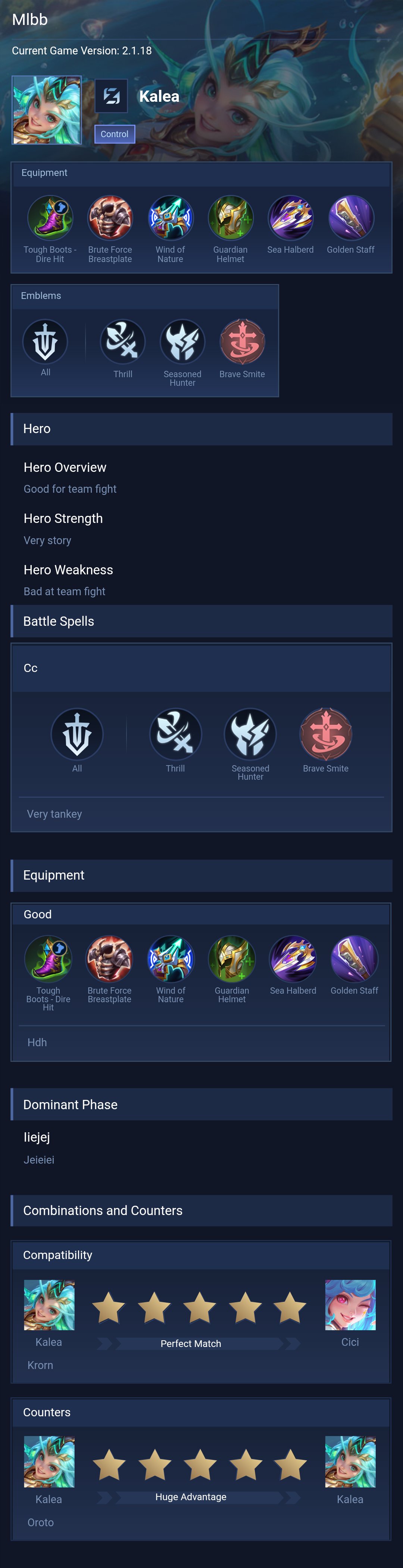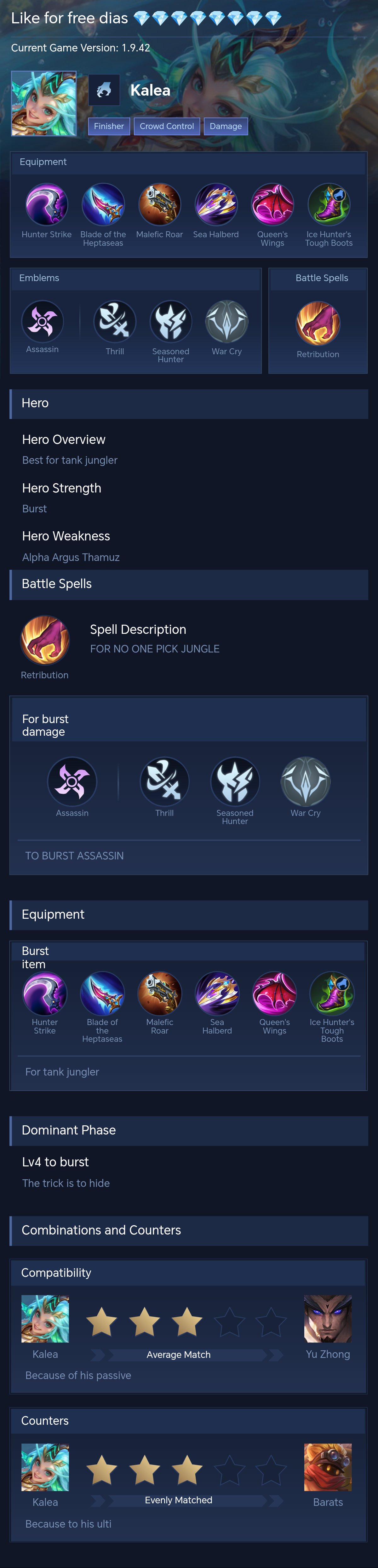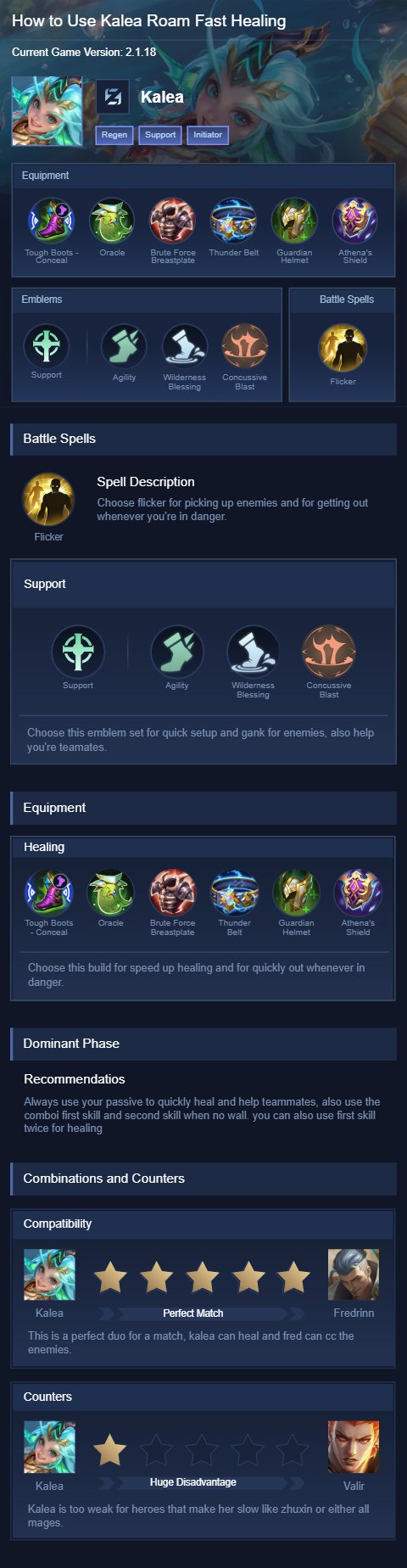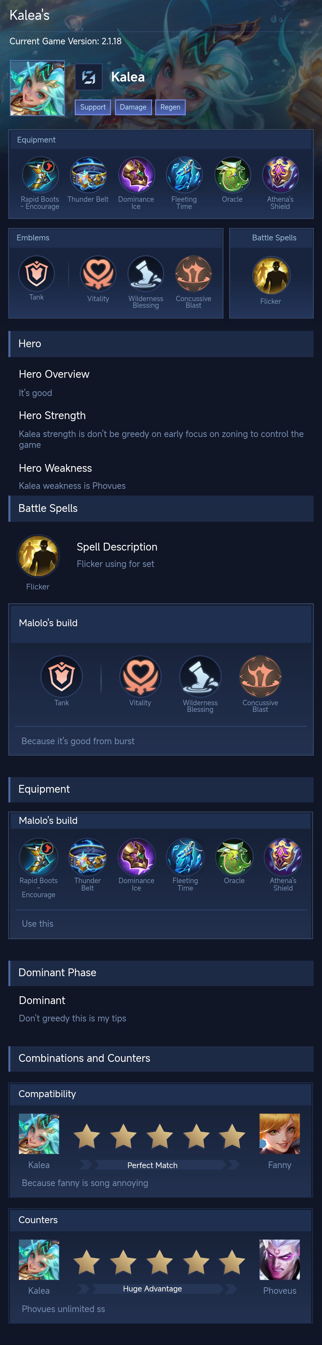 Kalea is a support hero with medium difficulty. This is a live guide — win rate, pick rate and counter data refresh every 6 hours from real ranked matches.