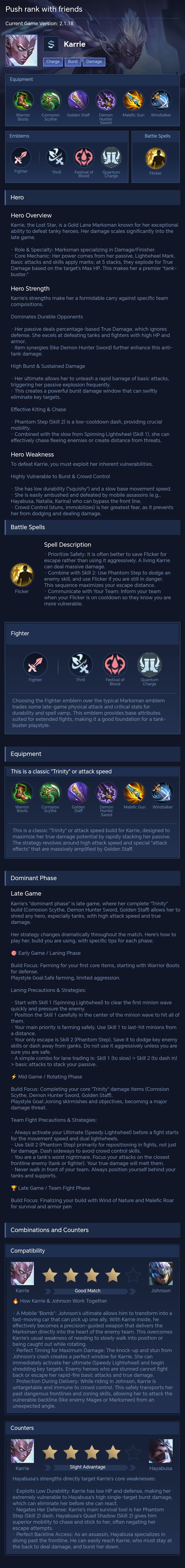 Karrie Guide 2026 — Best Build, Combos & Counters