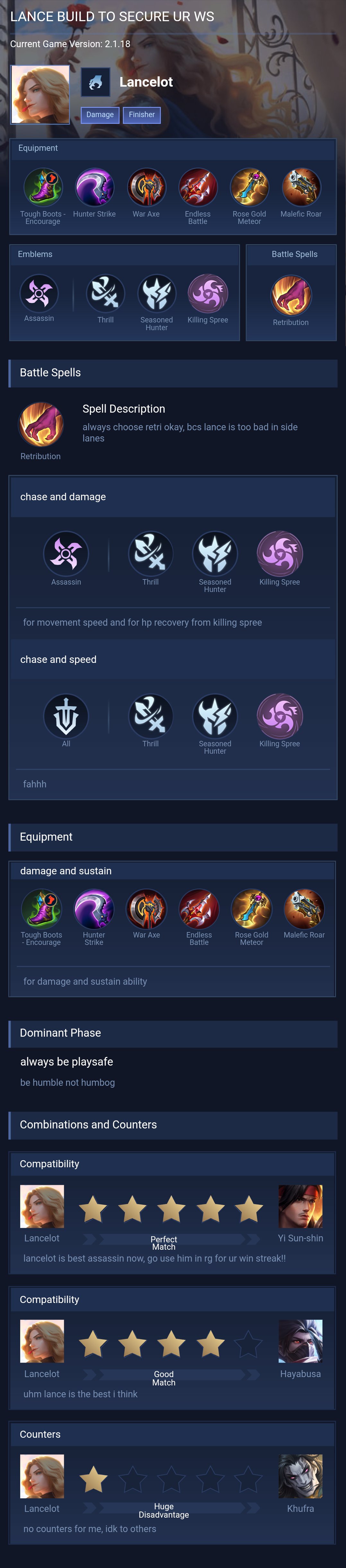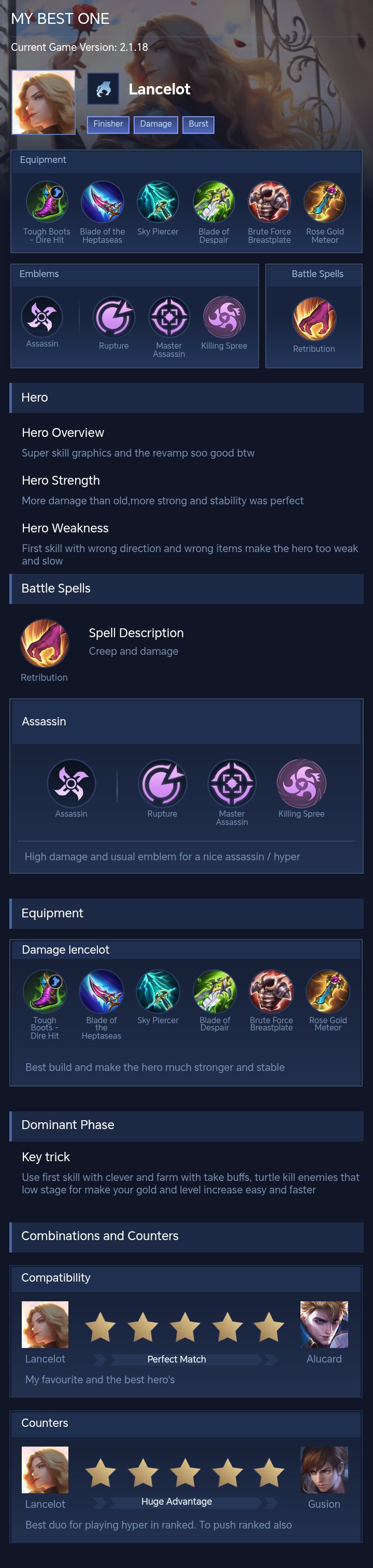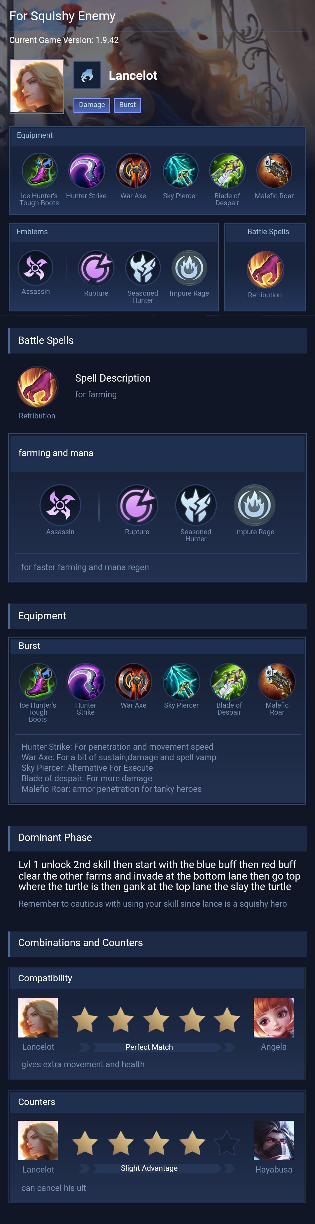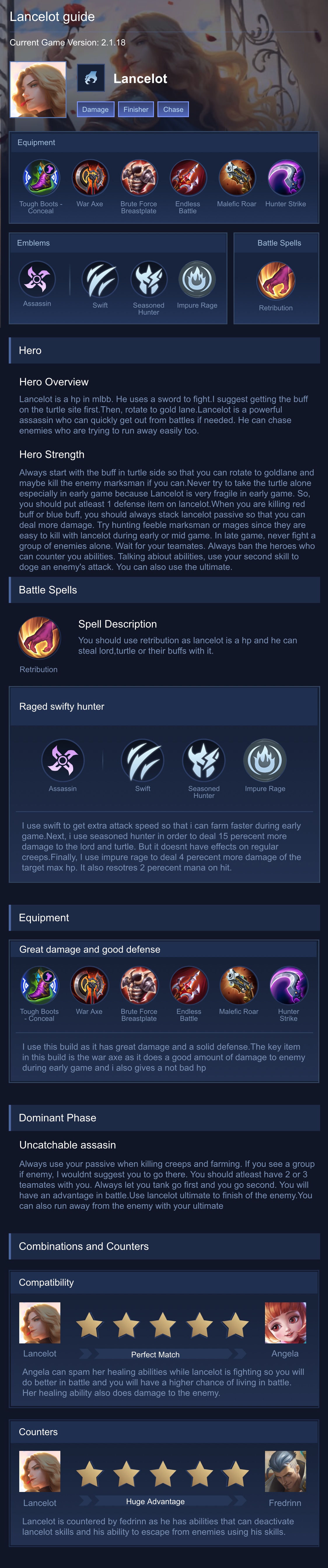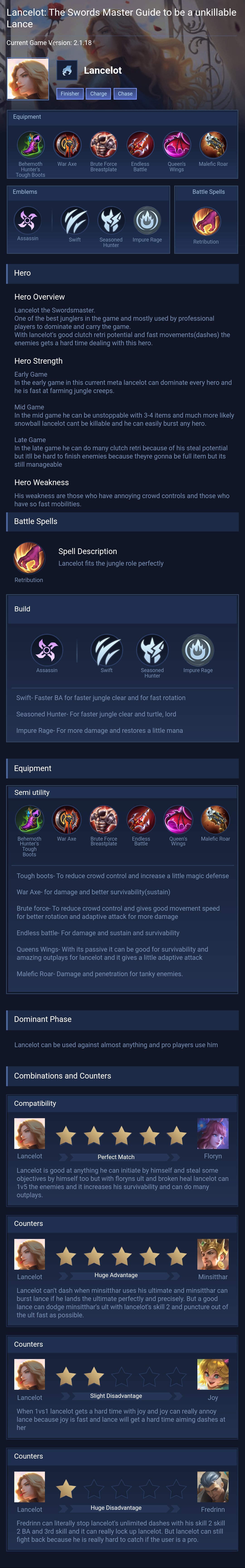 Battle Spell. Please note that Lancelot only farms the forest in the last season. There is no news yet on how other lines can be played.