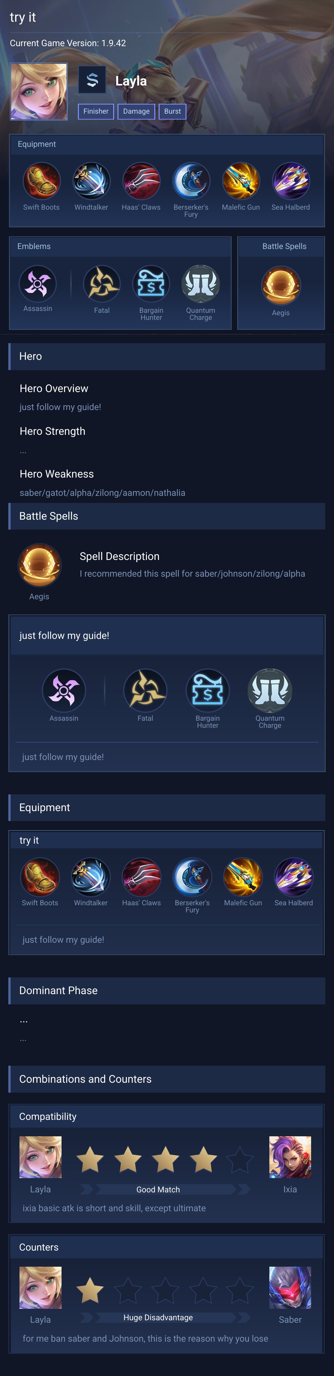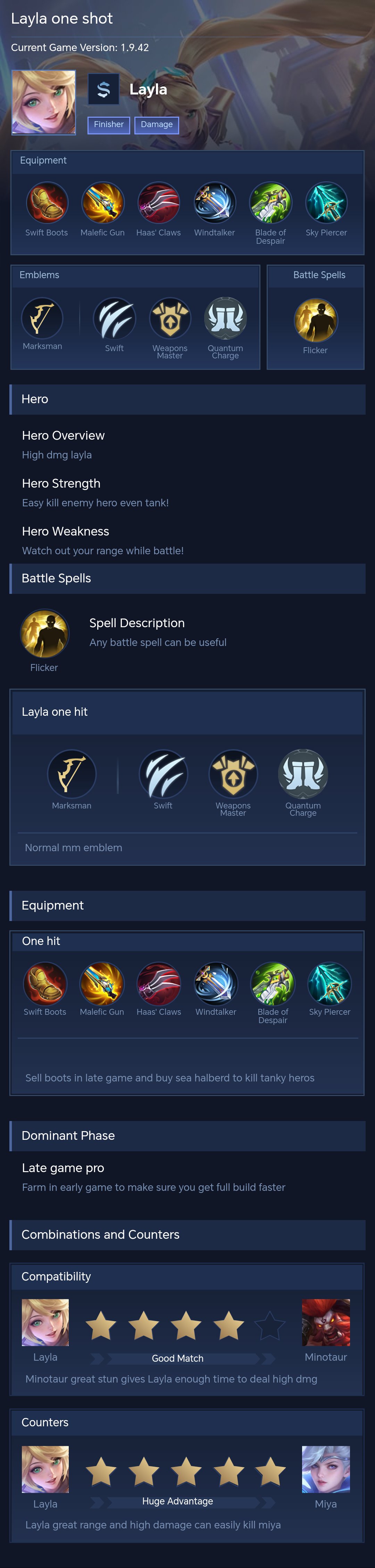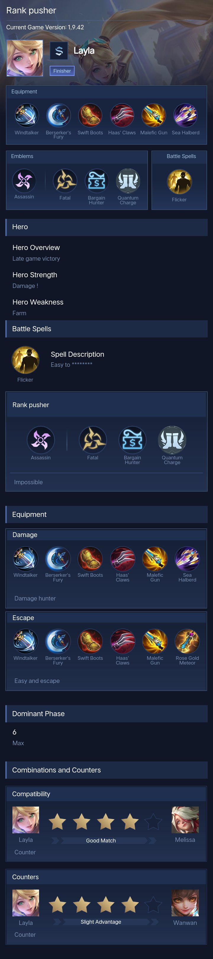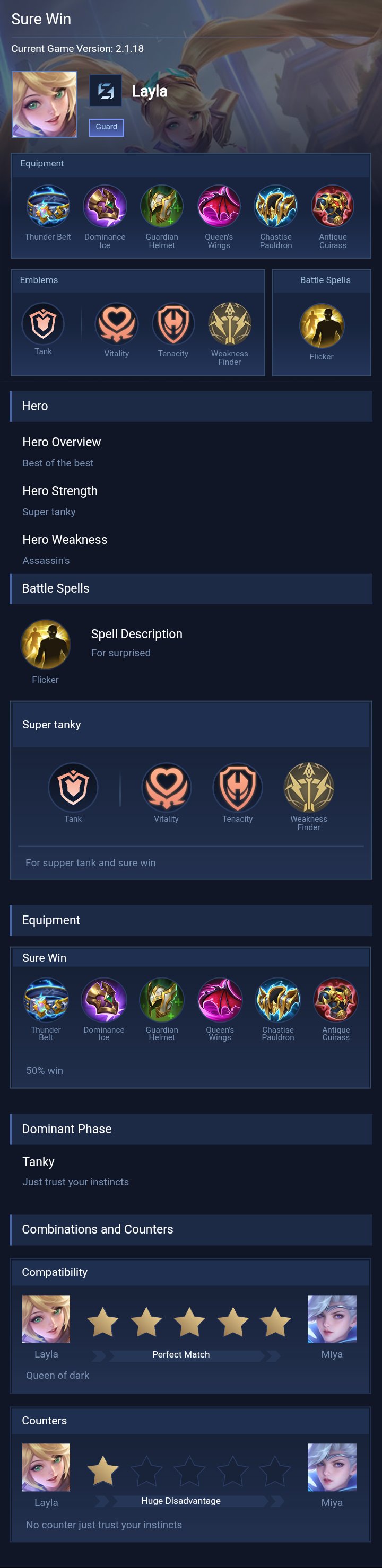 Killer Layla. This build is perfect when using Layla, Warrior Boots for early game defense (it can be replaced in late game). Windtalker and Berserker's Fury for Crit Chance. Haas Claws for Lifesteal, Malefic Gun for Even longer attack range, and wind of nature for immunity.