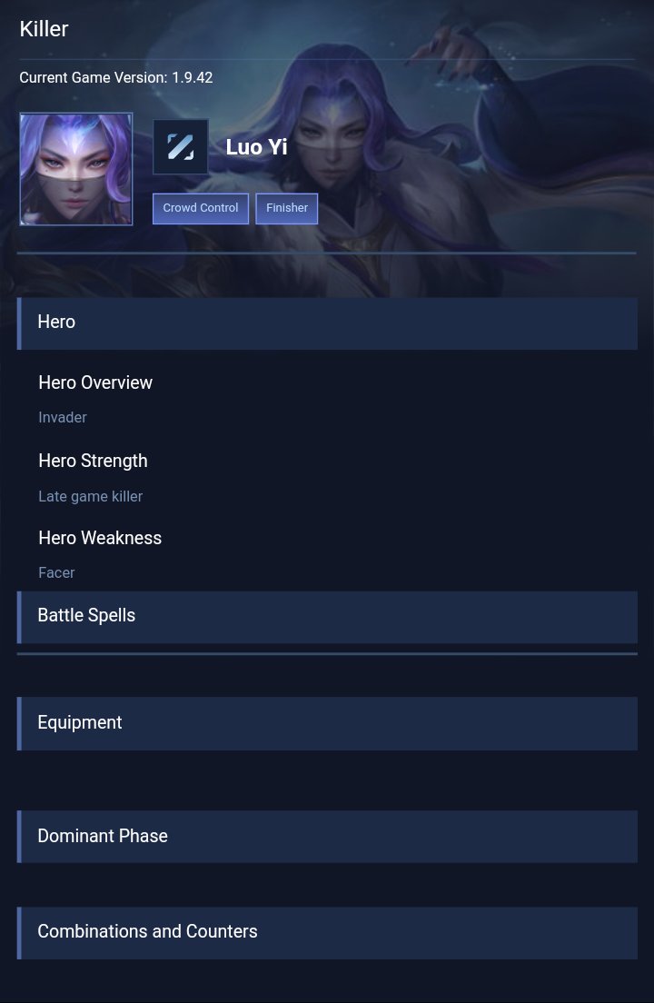 Sustained DPS. Prioritize items that reduce skill cooldown to greatly enhance Luo Yi's ganking ability. Build standard Mage damage equipment later to increase her overall damage output. If survival becomes a concern, consider replacing the last item with Winter Crown or Immortality.