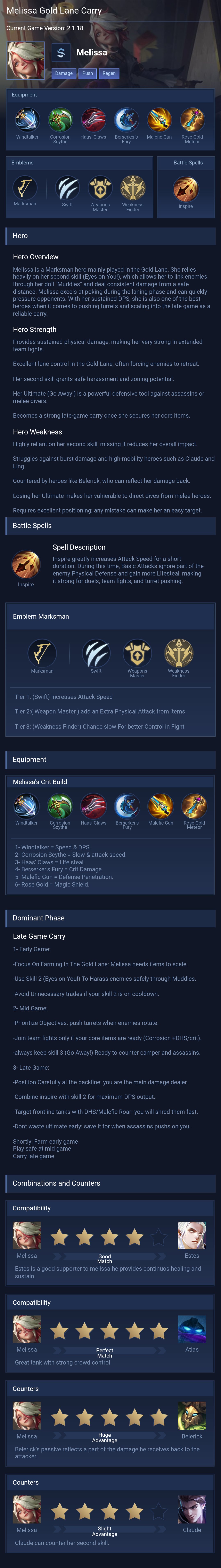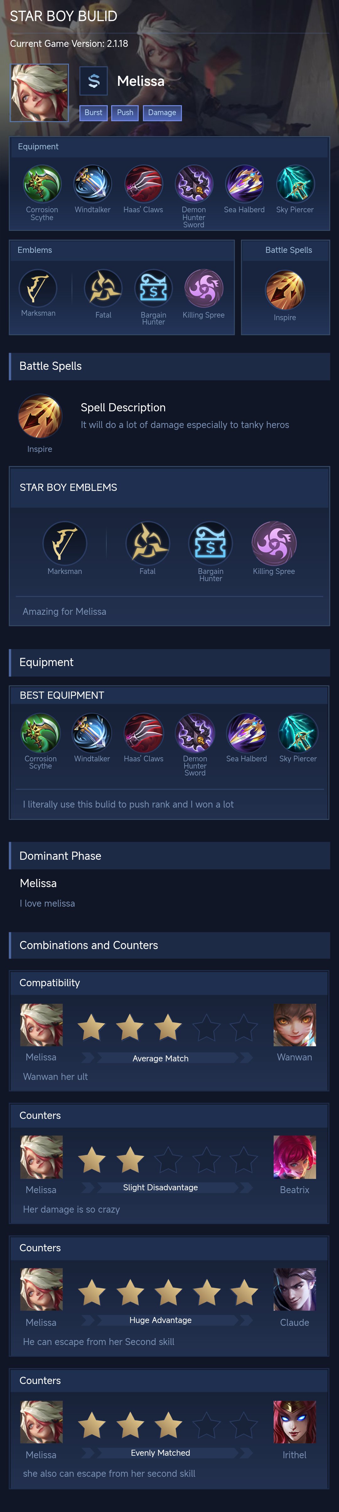 Melissa Guide 2026 — Best Build, Combos & Counters
