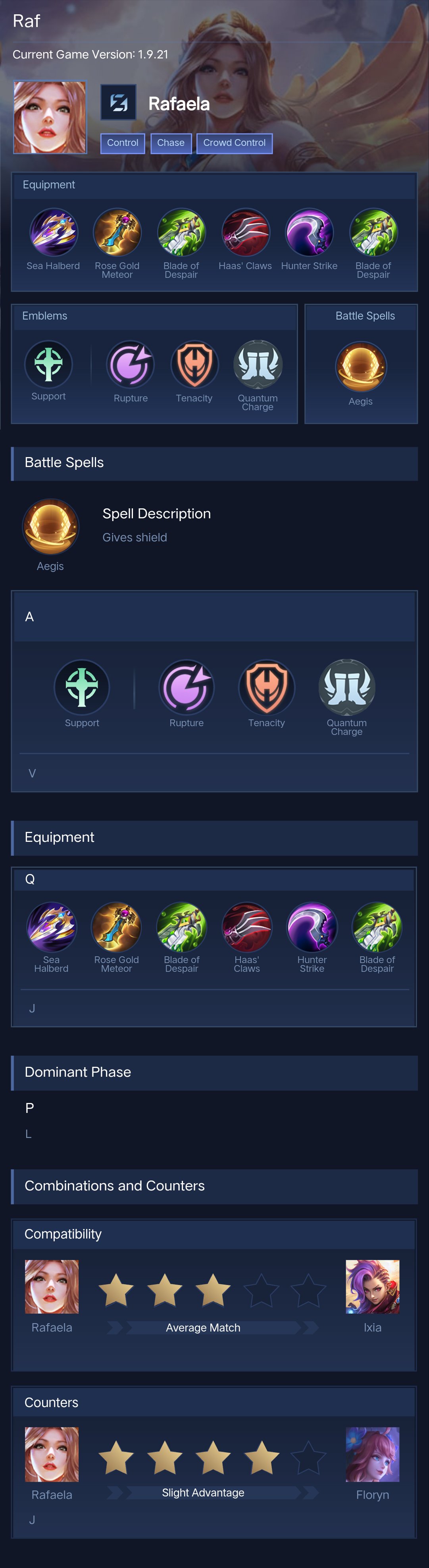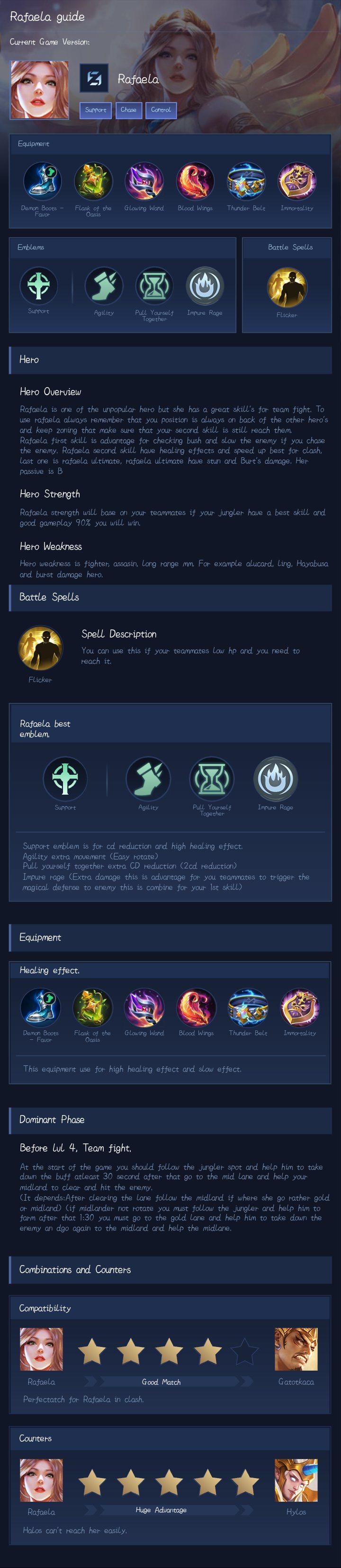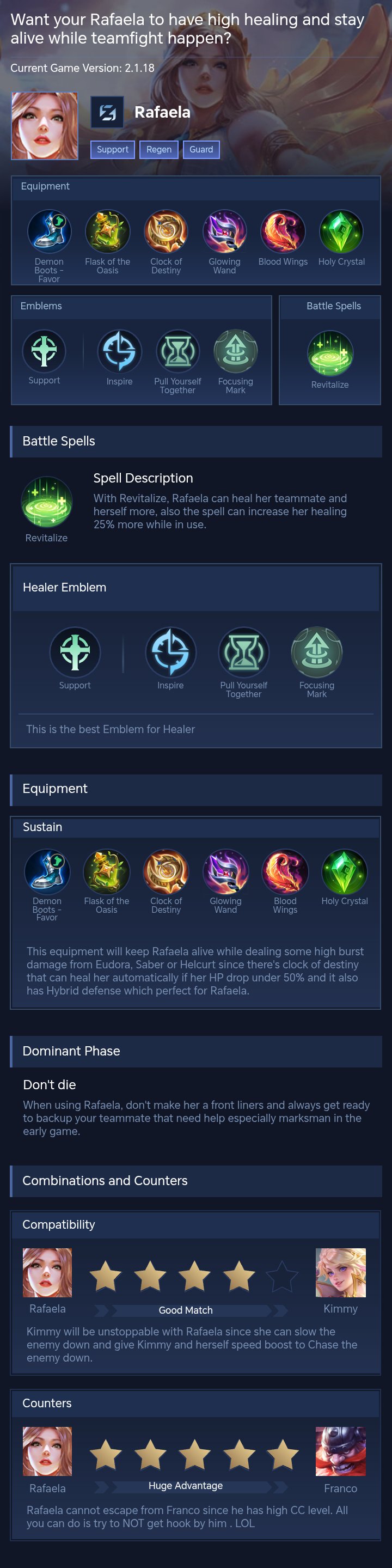 Rafaela is a support hero with easy difficulty. This is a live guide — win rate, pick rate and counter data refresh every 6 hours from real ranked matches.