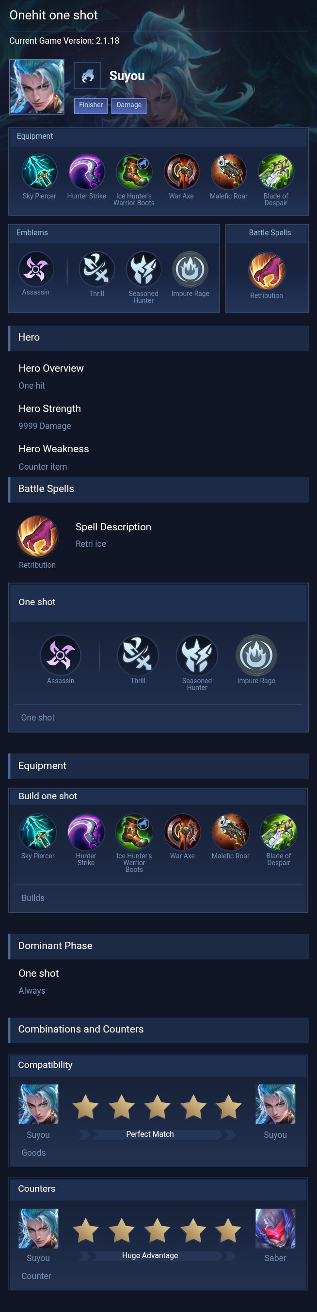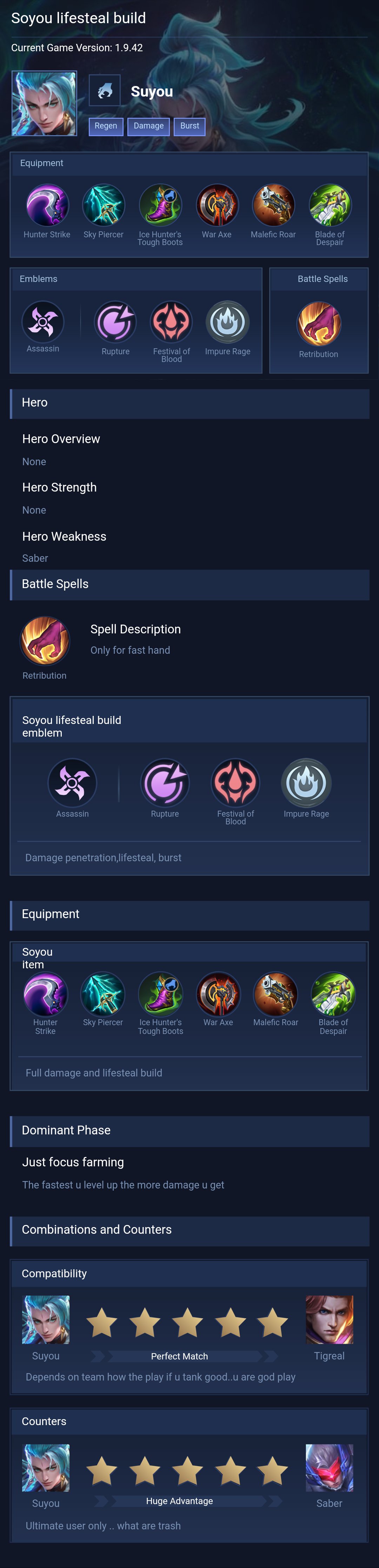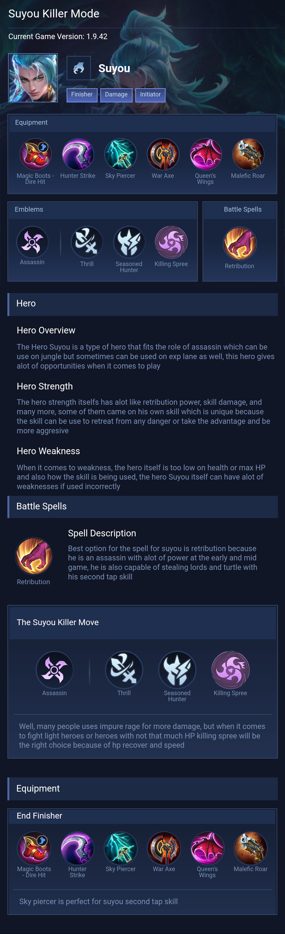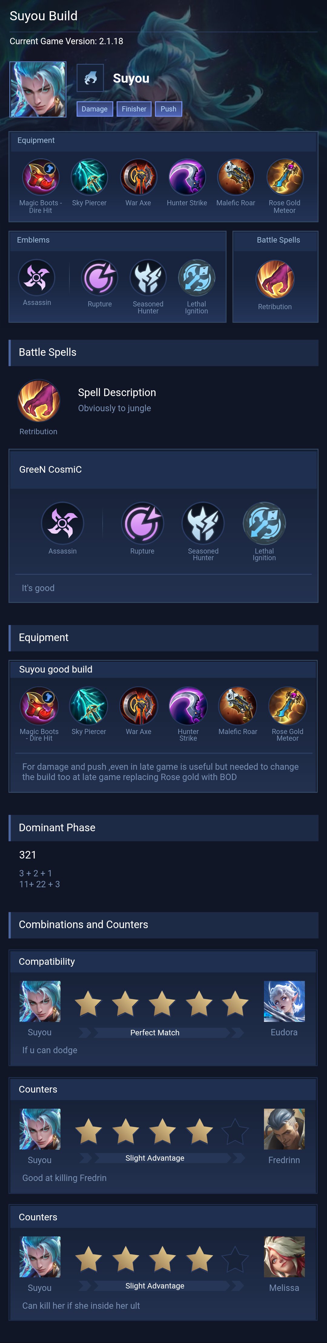 Suyou is a assassin hero with hard difficulty. This is a live guide — win rate, pick rate and counter data refresh every 6 hours from real ranked matches.