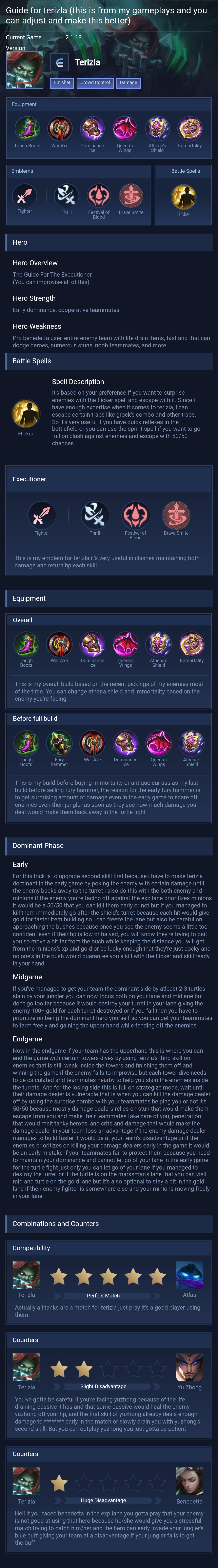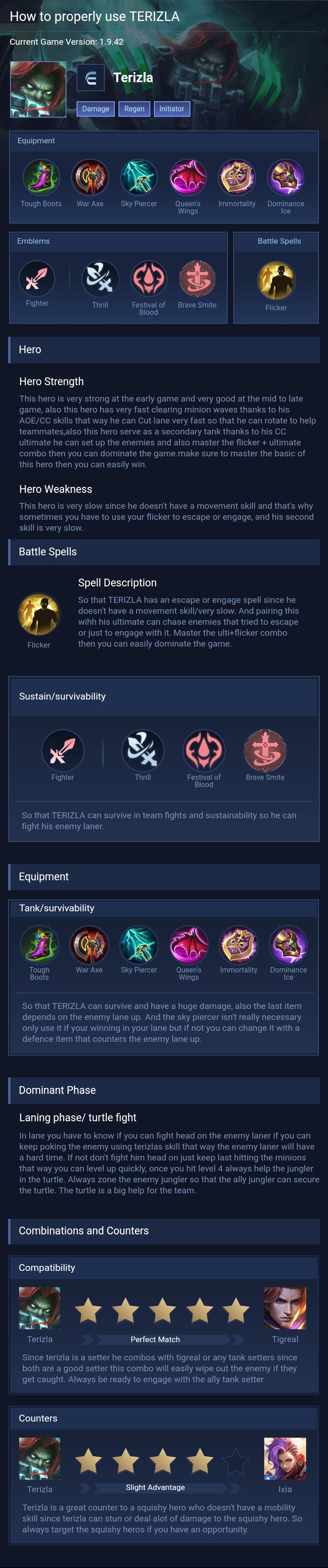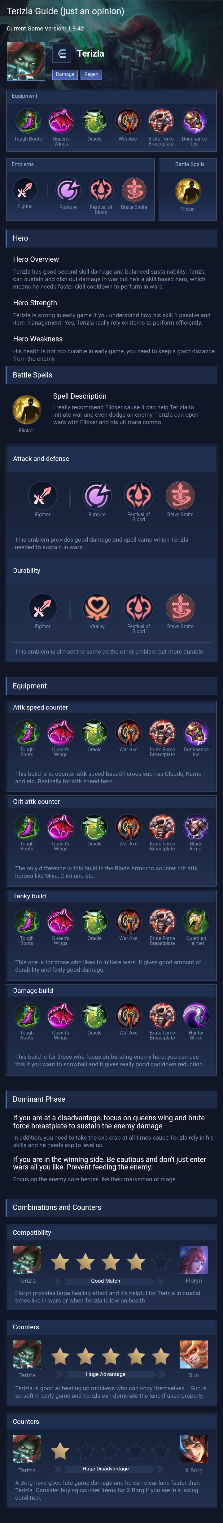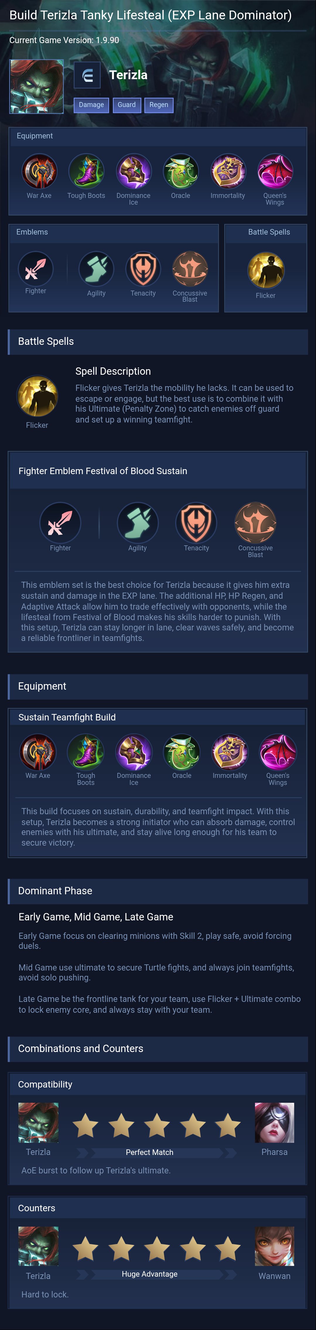 Terizla Guide 2026 — Best Build, Combos & Counters