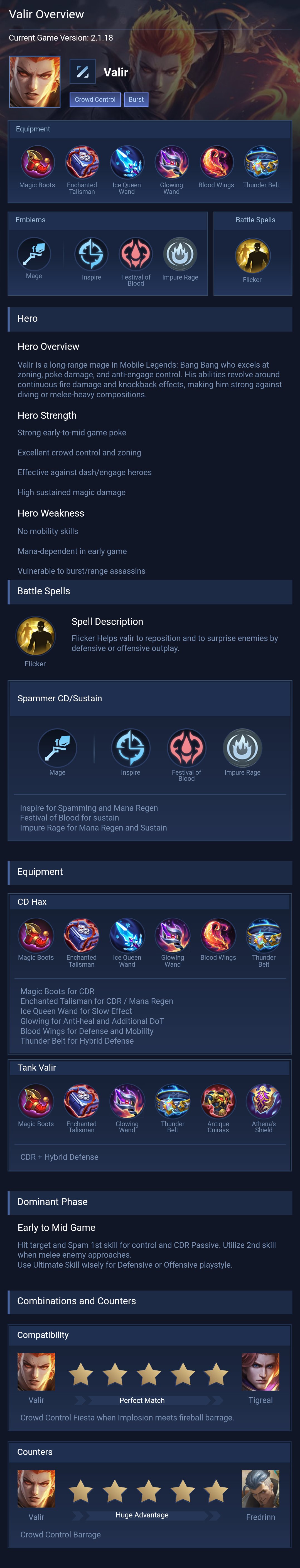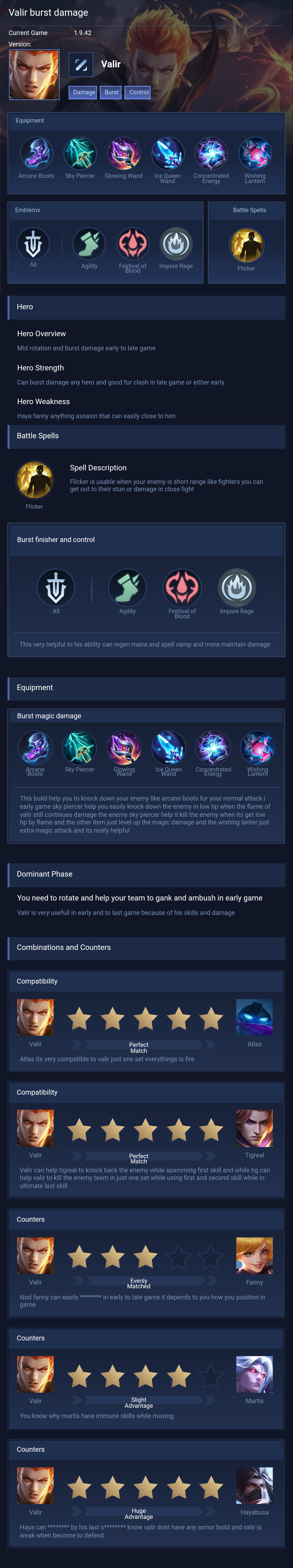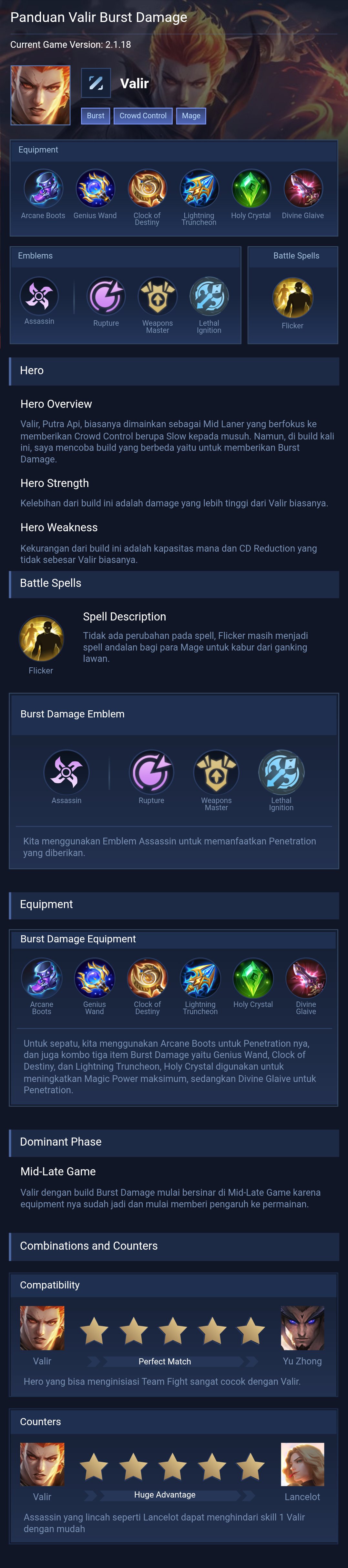 Baca panduan ini agar Valir kalian memiliki Burst Damage yang kuat.