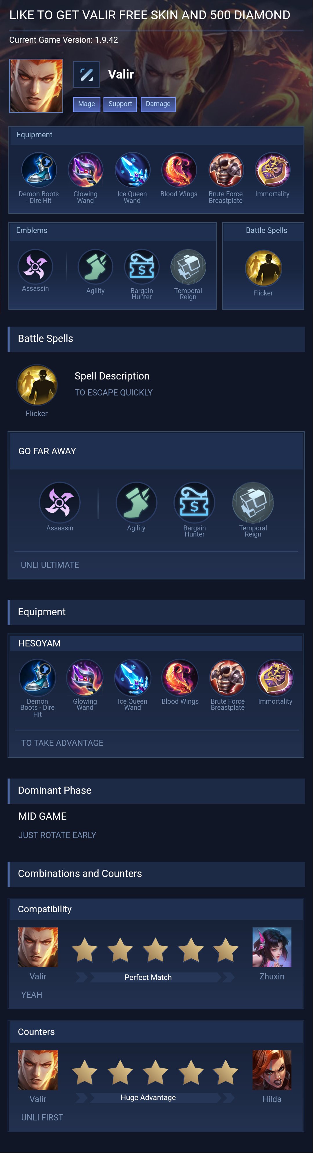 3. Strategic Positioning: Flicker helps Valir stay safe in the backline during team fights, avoiding being targeted by frontliners.