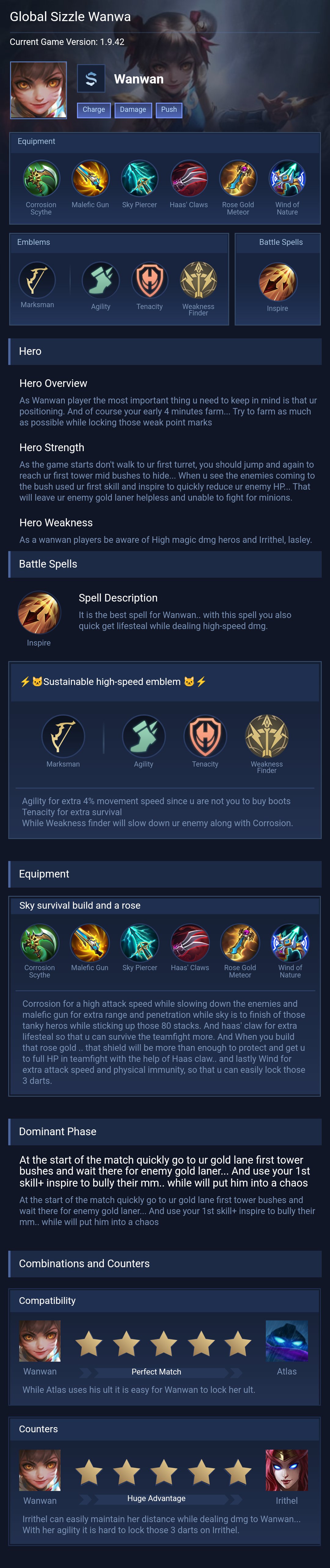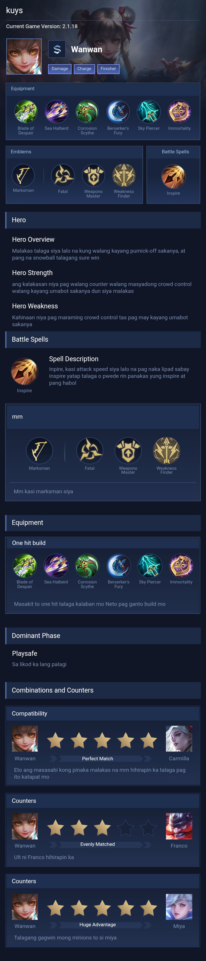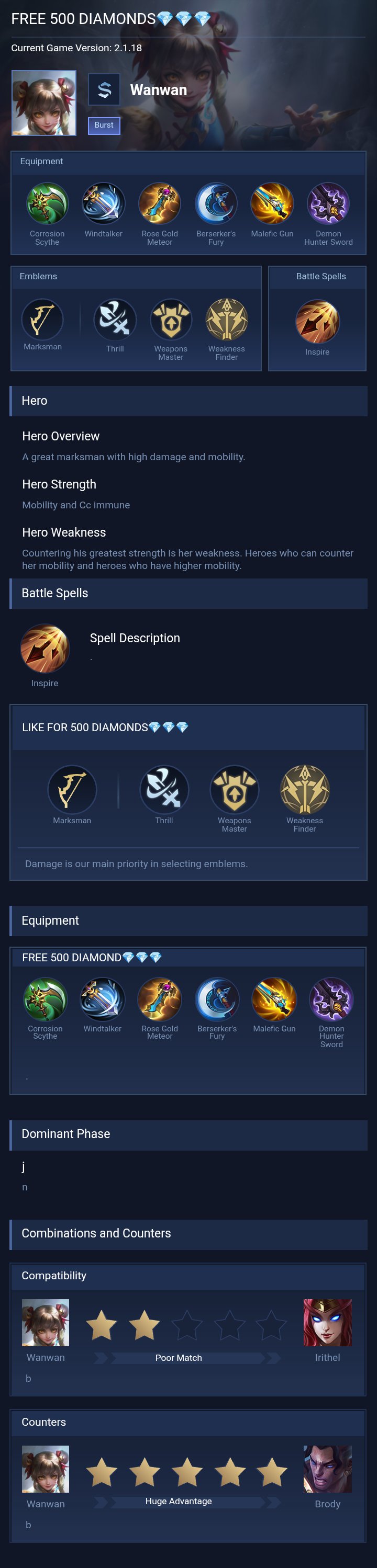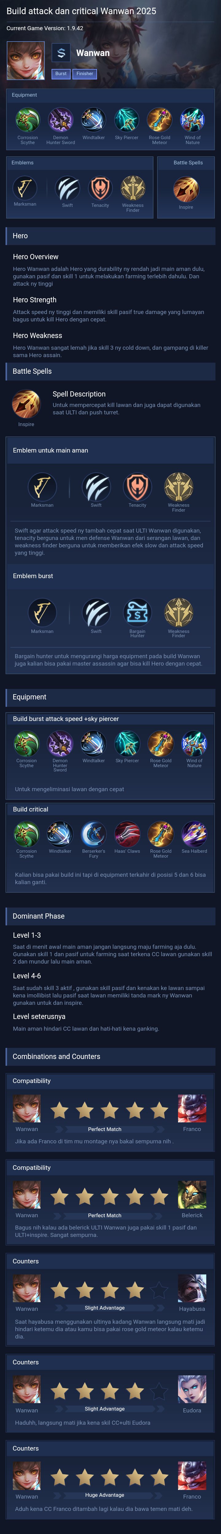Wanwan is a marksman hero with medium difficulty. This is a live guide — win rate, pick rate and counter data refresh every 6 hours from real ranked matches.