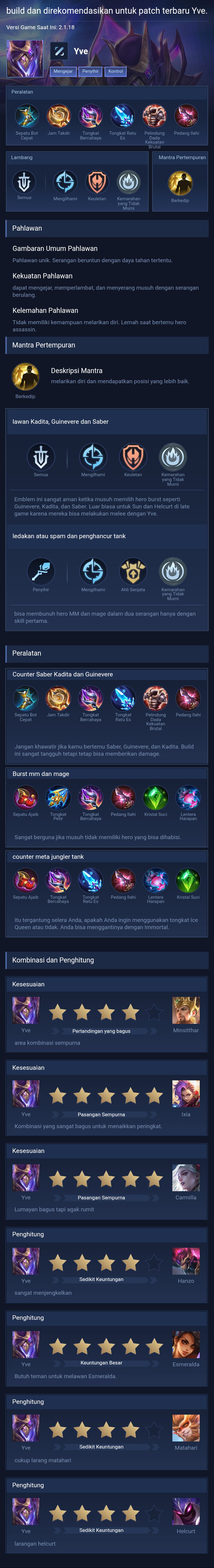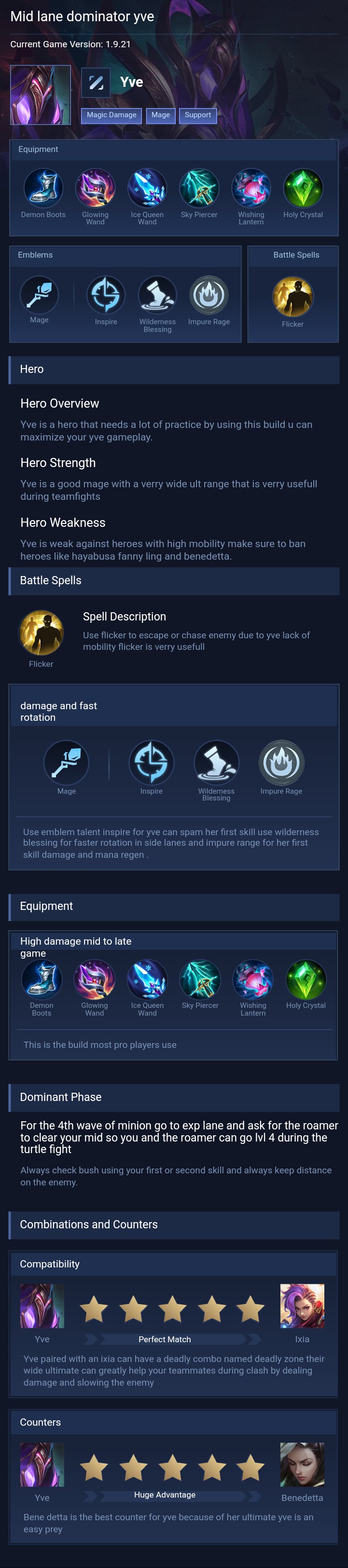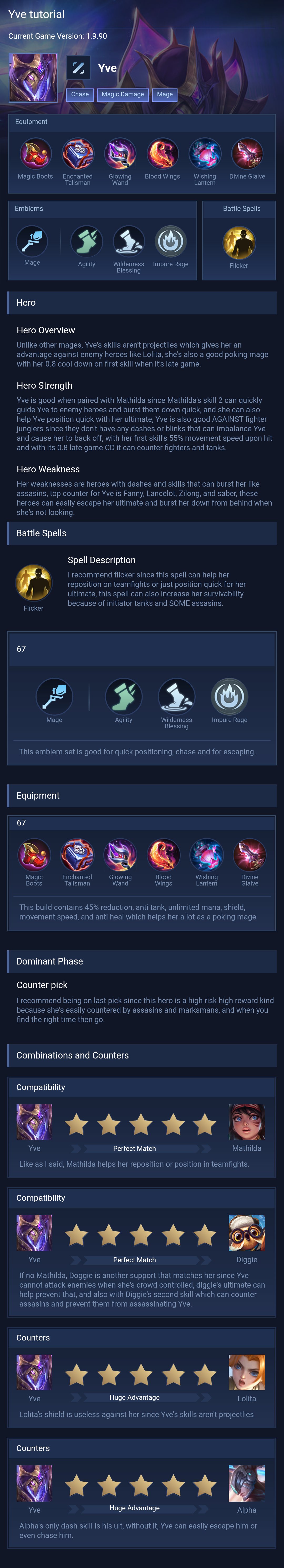 Yve is a mage hero with hard difficulty. This is a live guide — win rate, pick rate and counter data refresh every 6 hours from real ranked matches.
