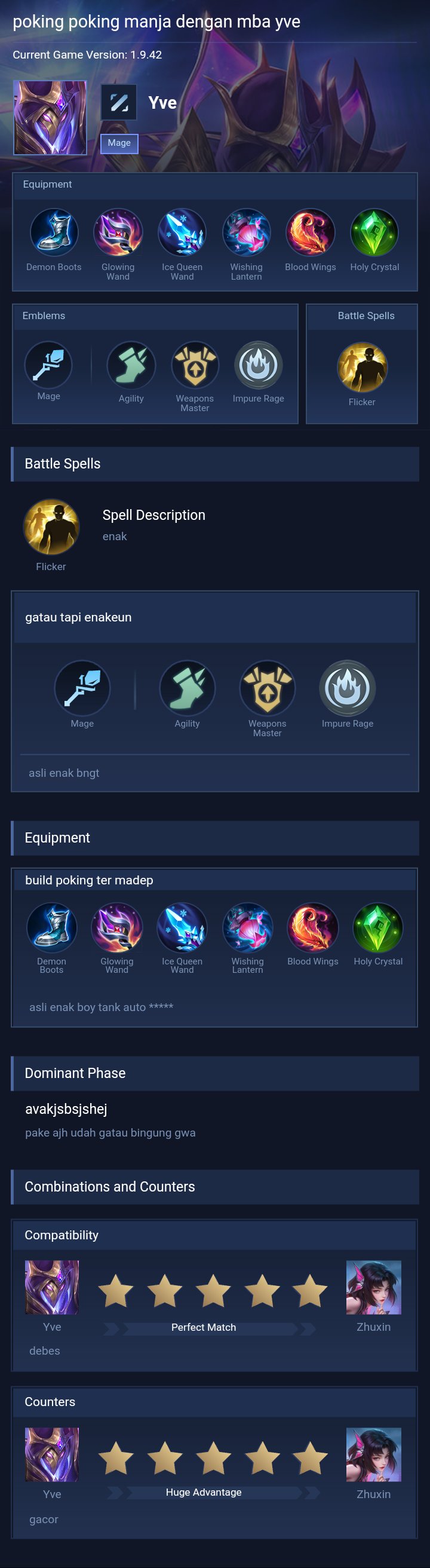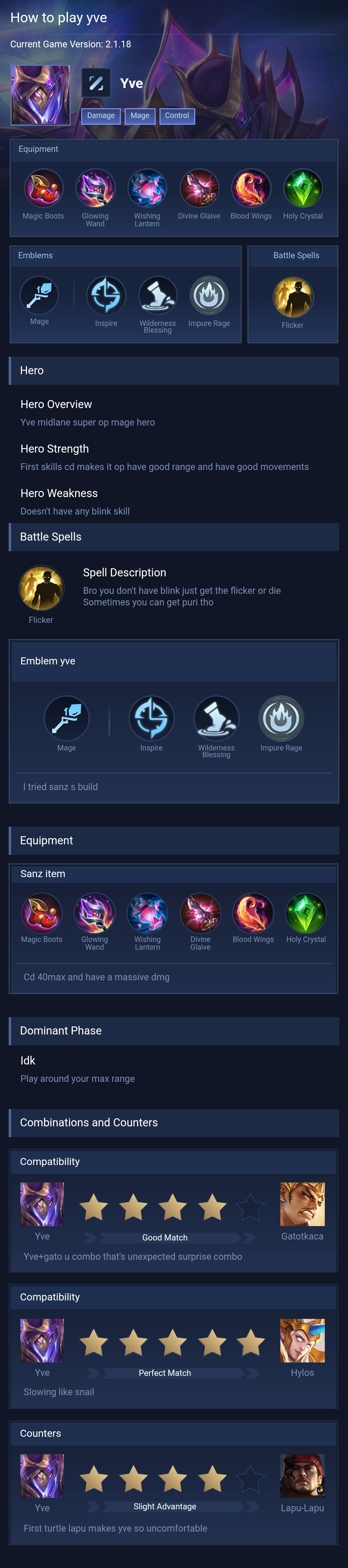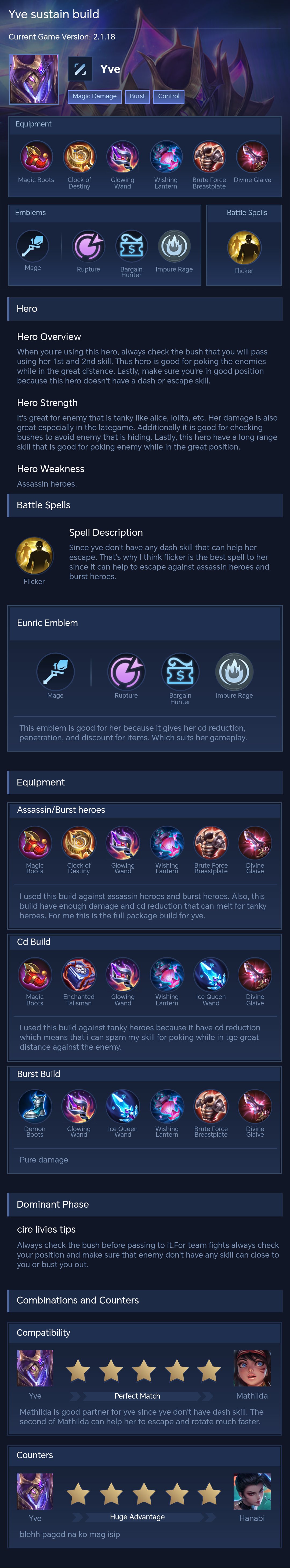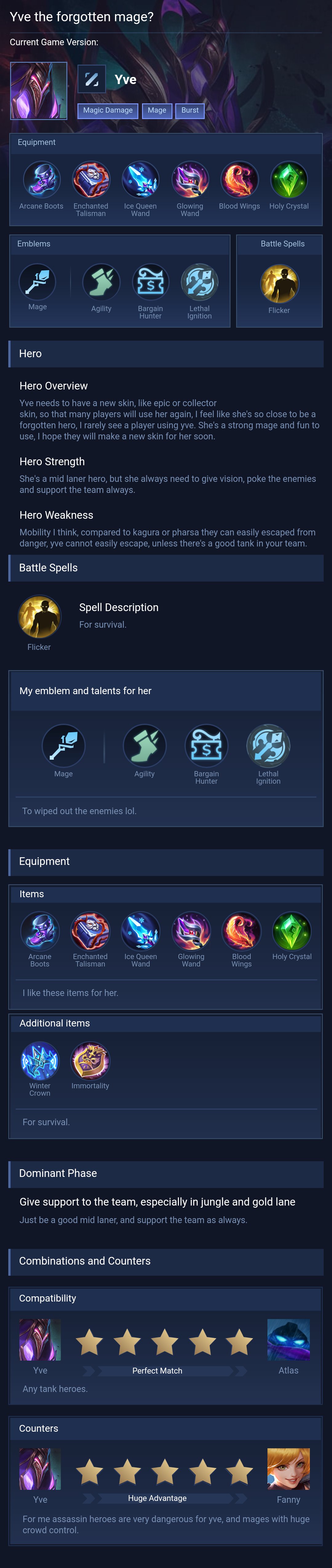 Yve is a mage hero with hard difficulty. This is a live guide — win rate, pick rate and counter data refresh every 6 hours from real ranked matches.