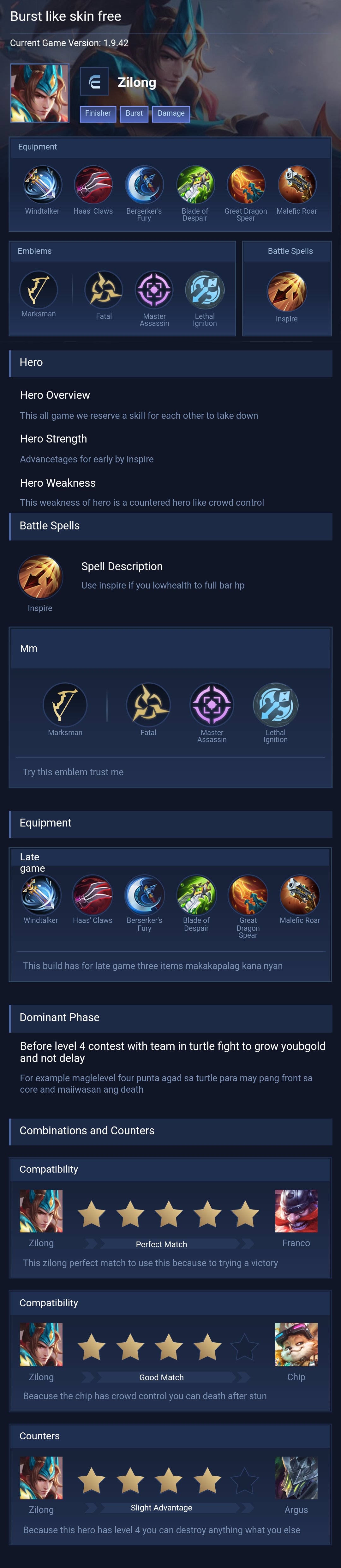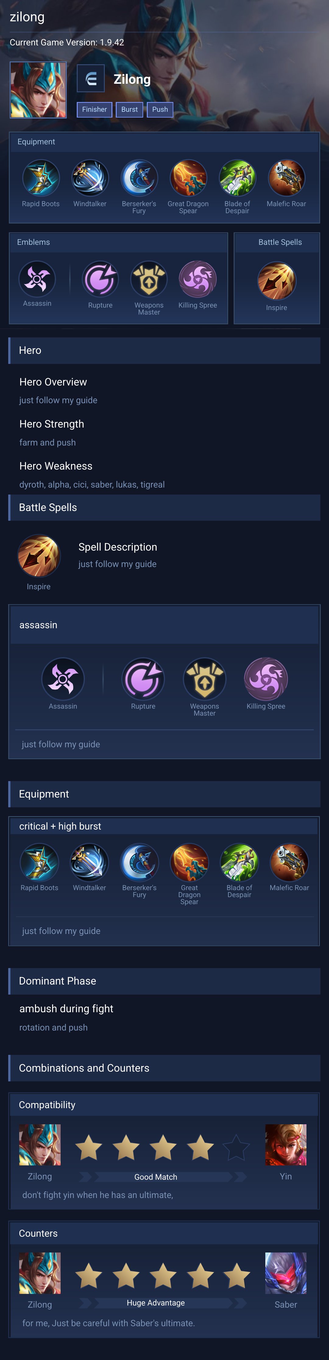 Zilong is a fighter hero with easy difficulty. This is a live guide — win rate, pick rate and counter data refresh every 6 hours from real ranked matches.