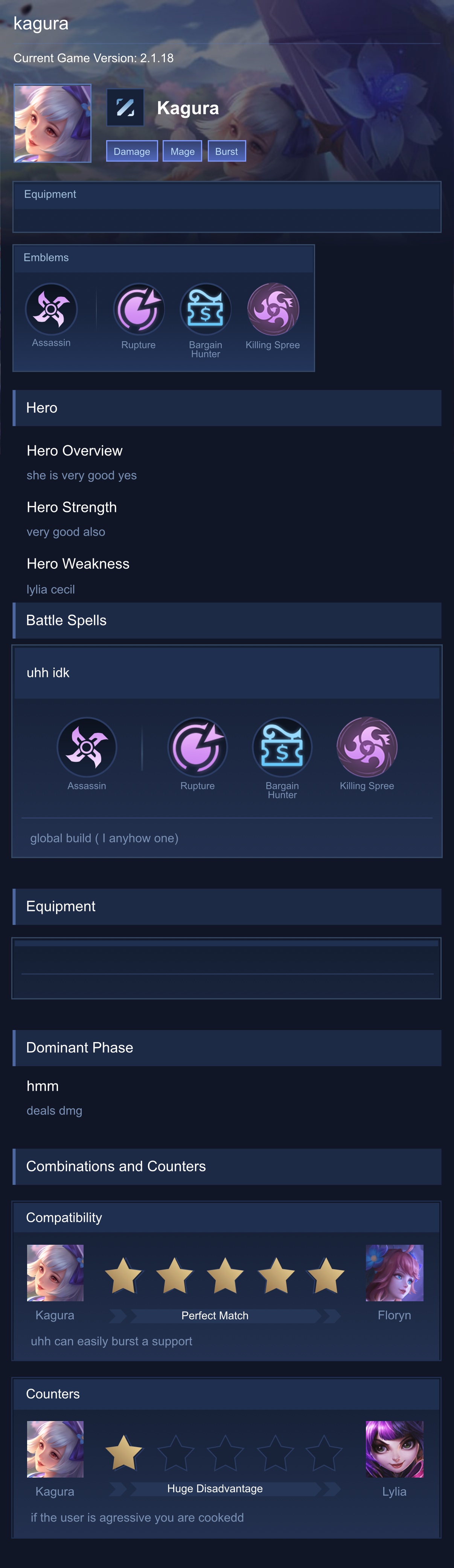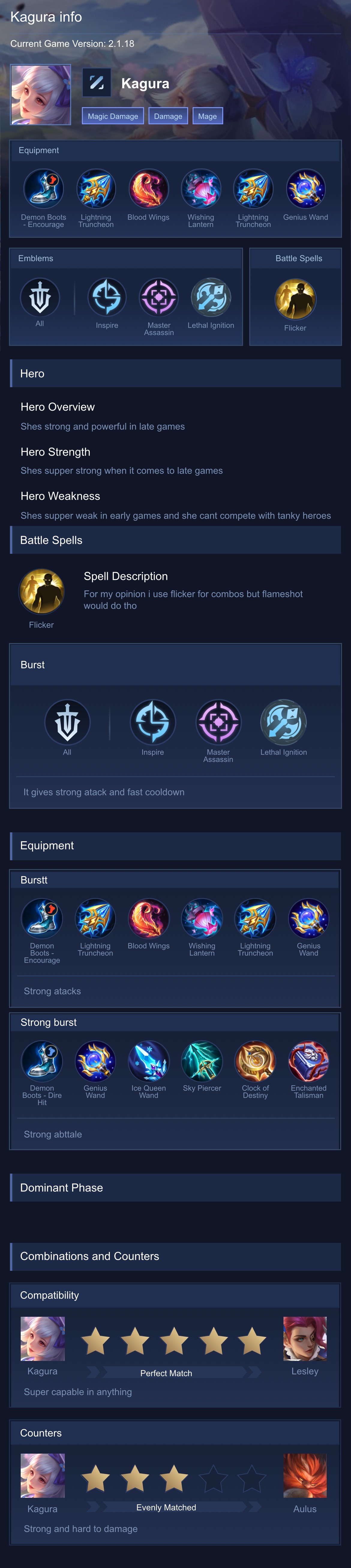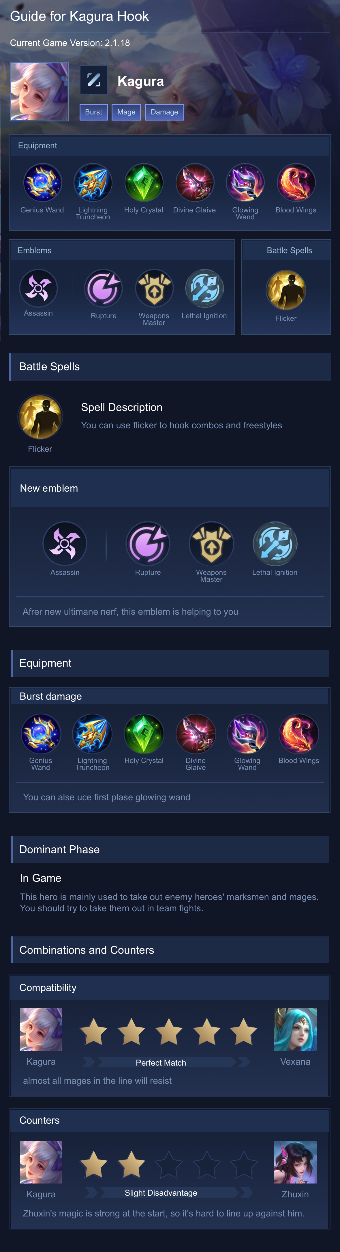 Kagura is a mage hero with hard difficulty. This is a live guide — win rate, pick rate and counter data refresh every 6 hours from real ranked matches.