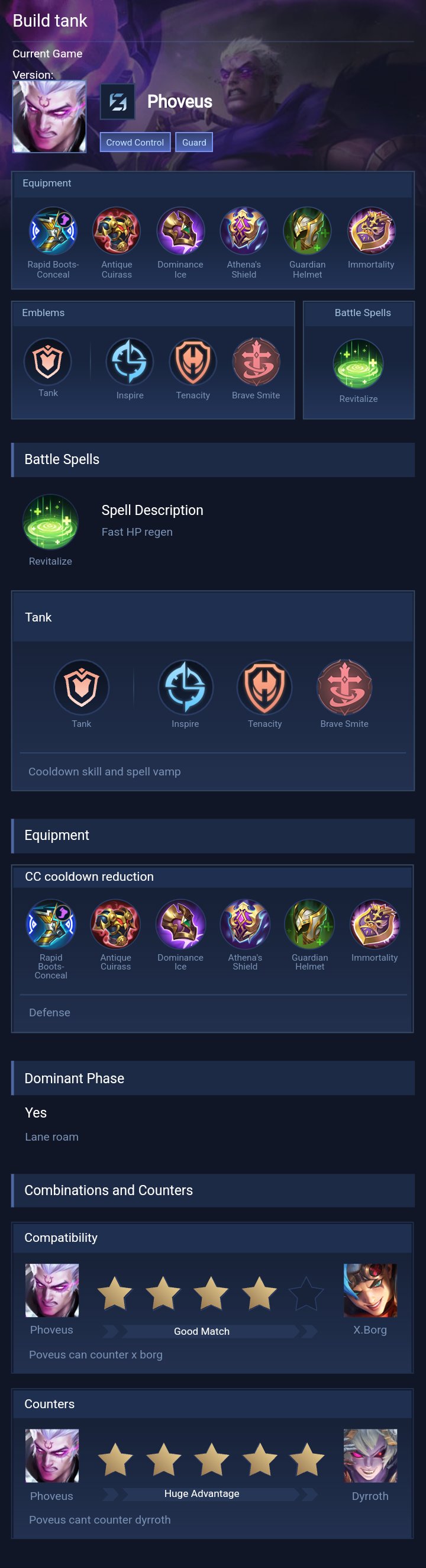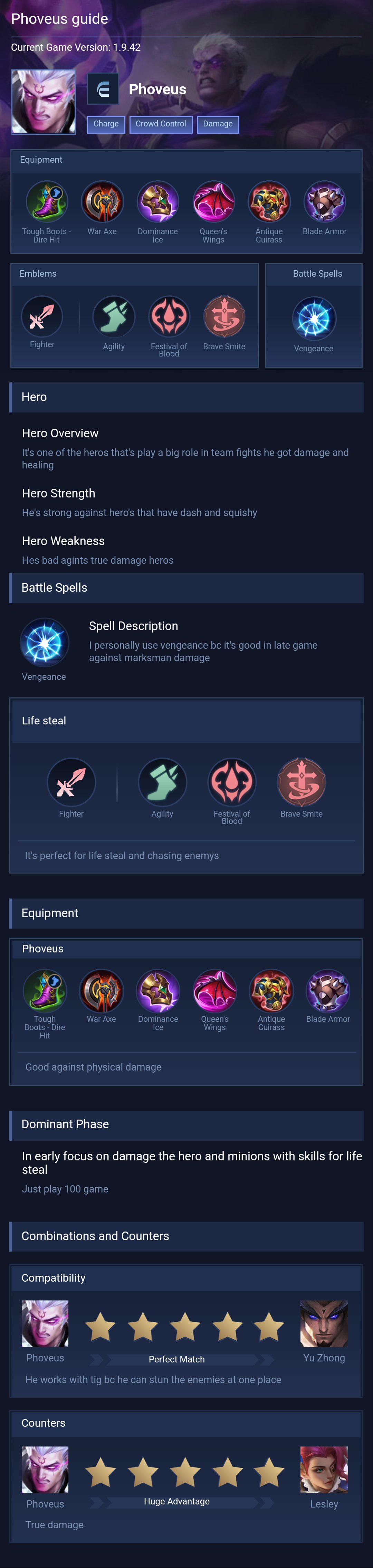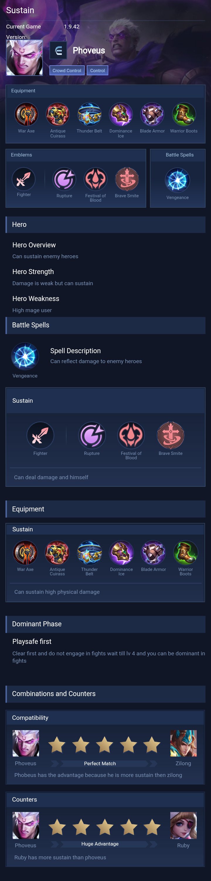 Phoveus is a fighter hero with medium difficulty. This is a live guide — win rate, pick rate and counter data refresh every 6 hours from real ranked matches.