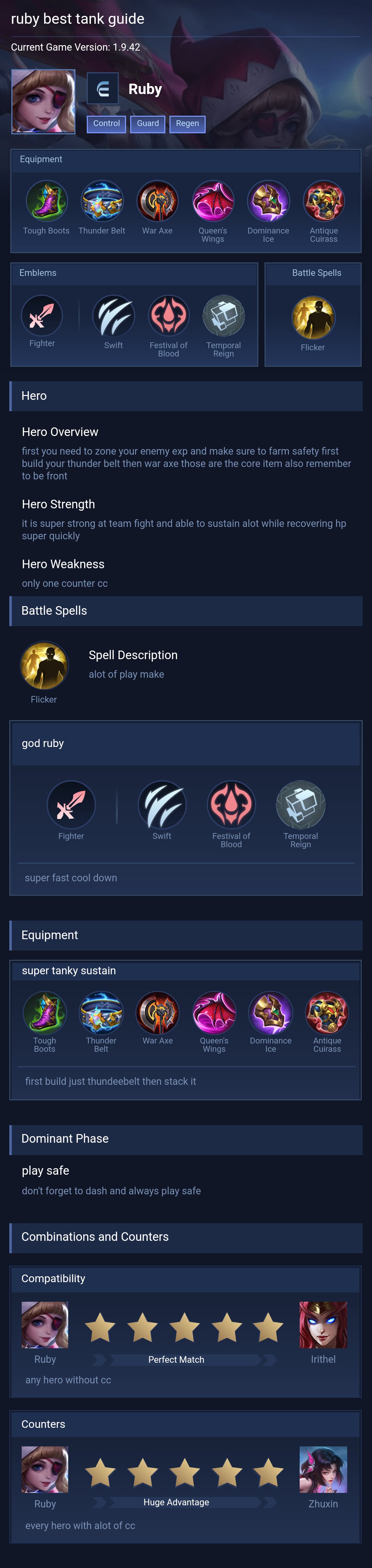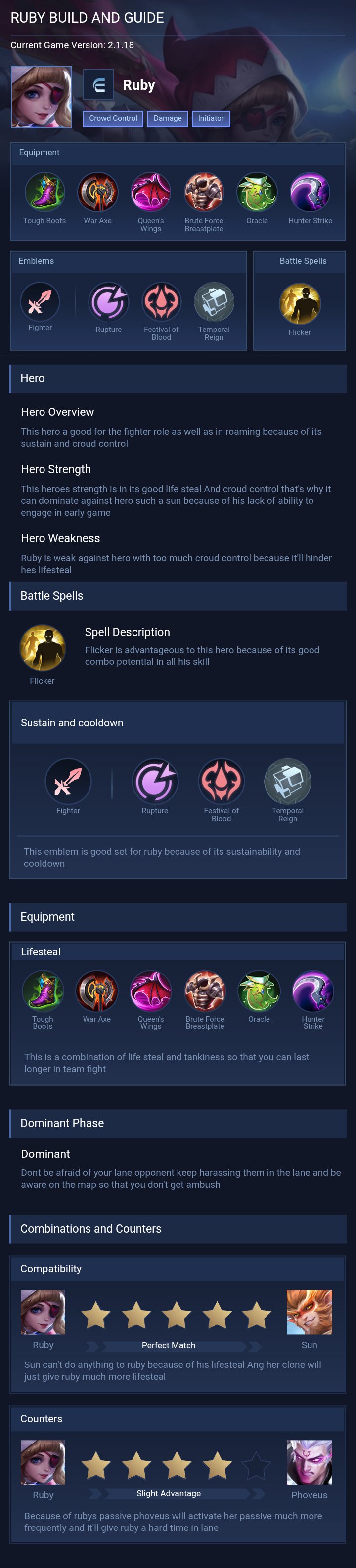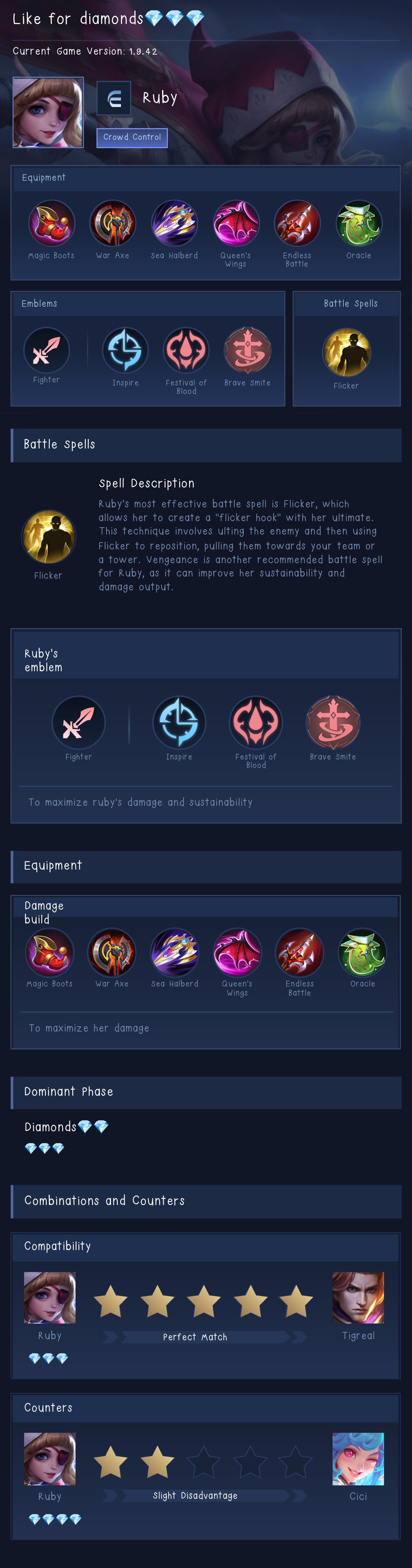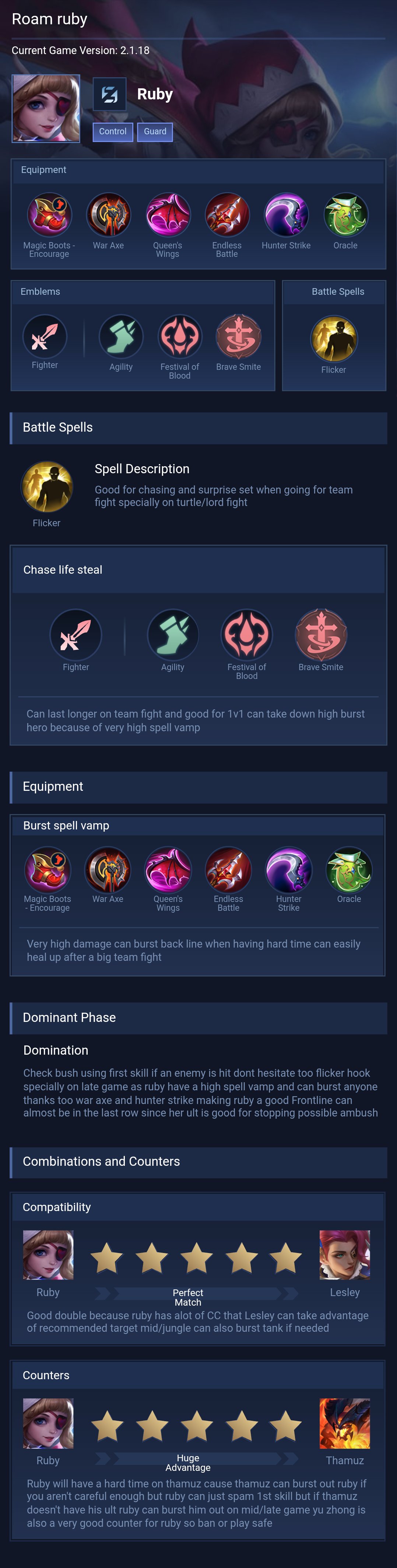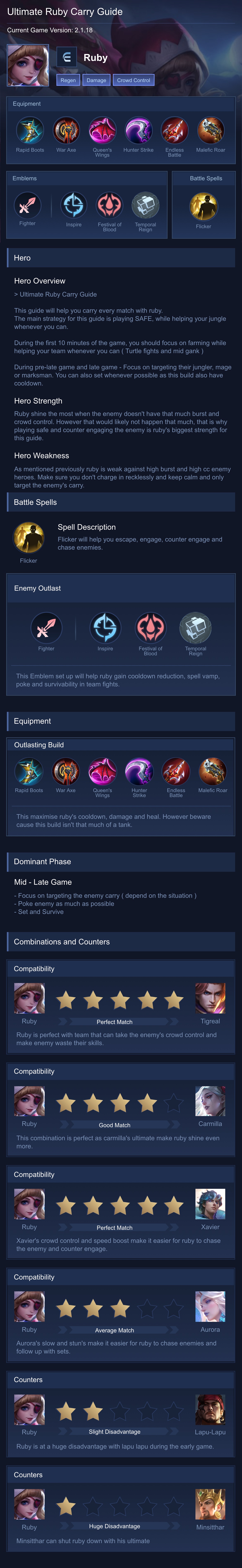 This guide is recommended for players who want a balanced Ruby playstyle with strong sustain and crowd control. It is easy to use and effective in most situations, especially in team fights.